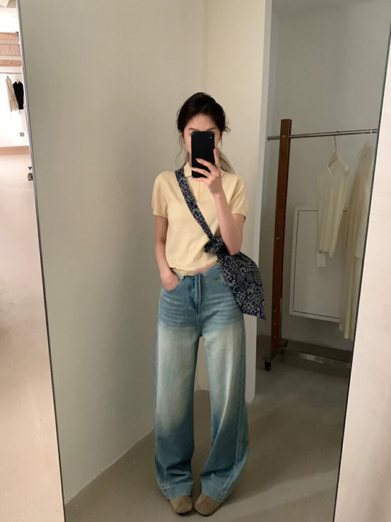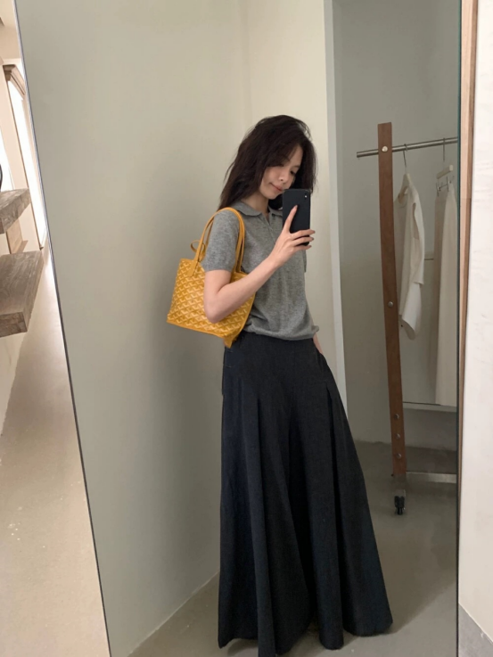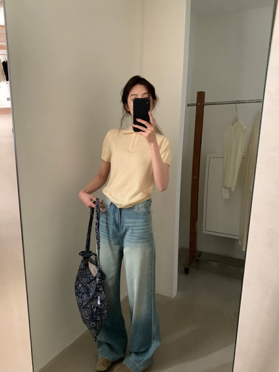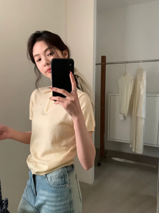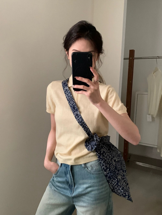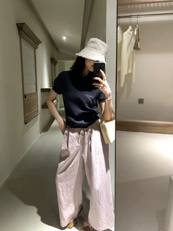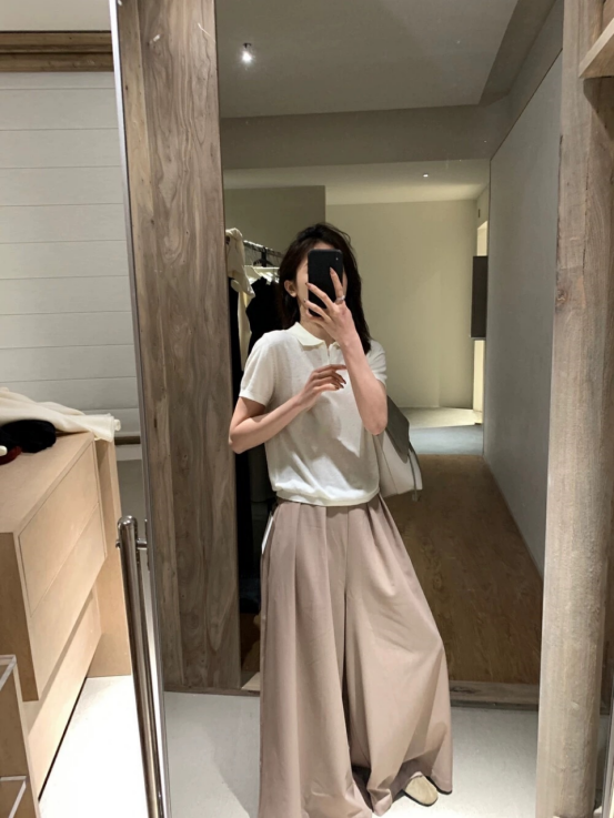 针织棉料摸起来手感柔软 穿起来舒适修身 平时随手拿起就能穿出门. 不用太费脑筋想穿什么 可以配阔腿/牛仔裤/裙子