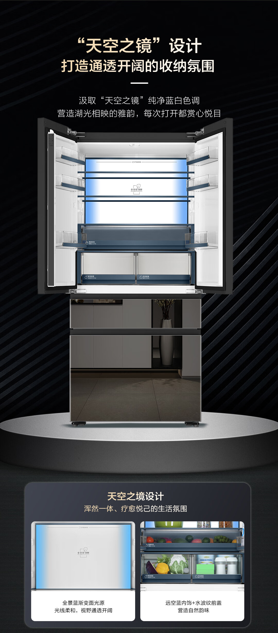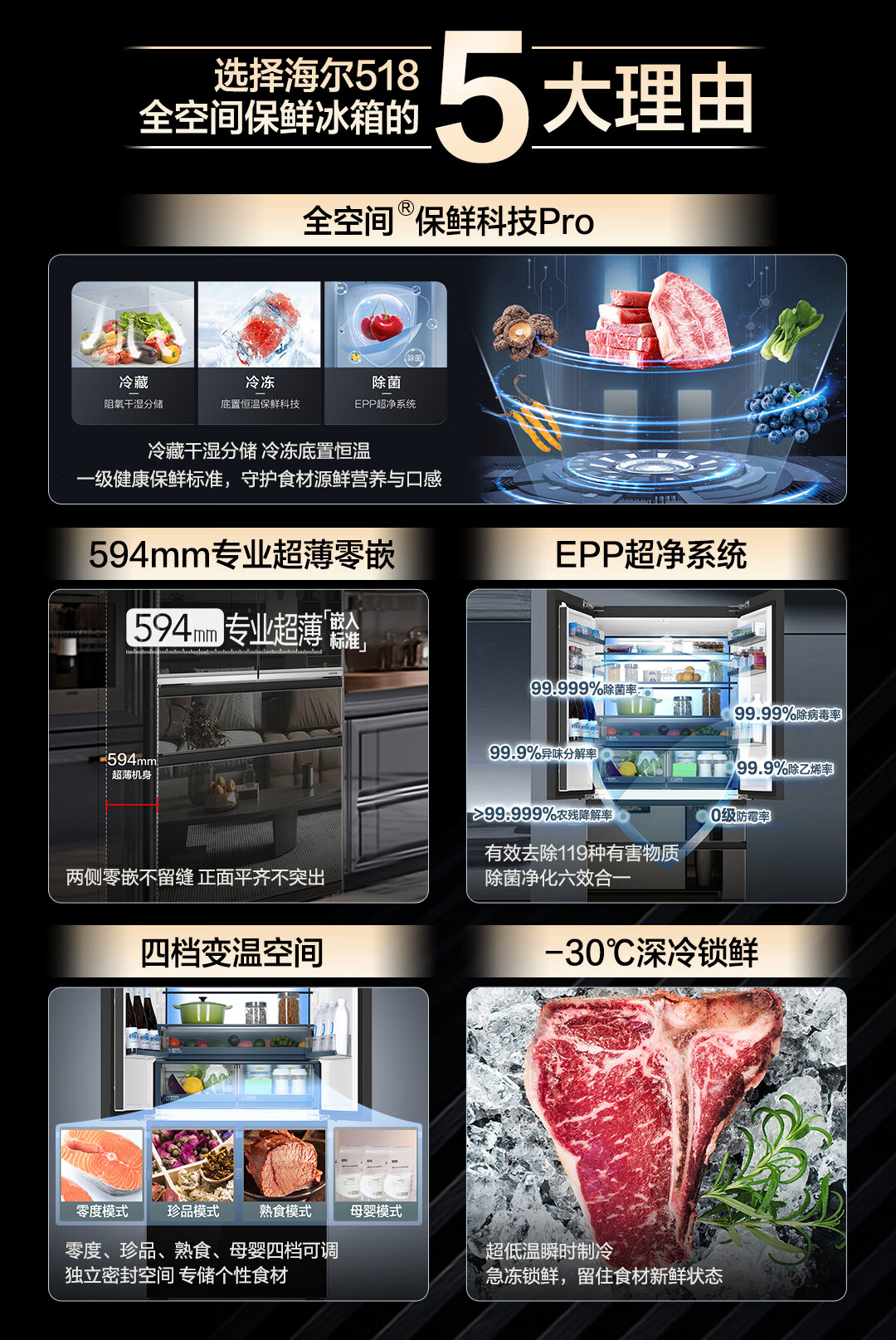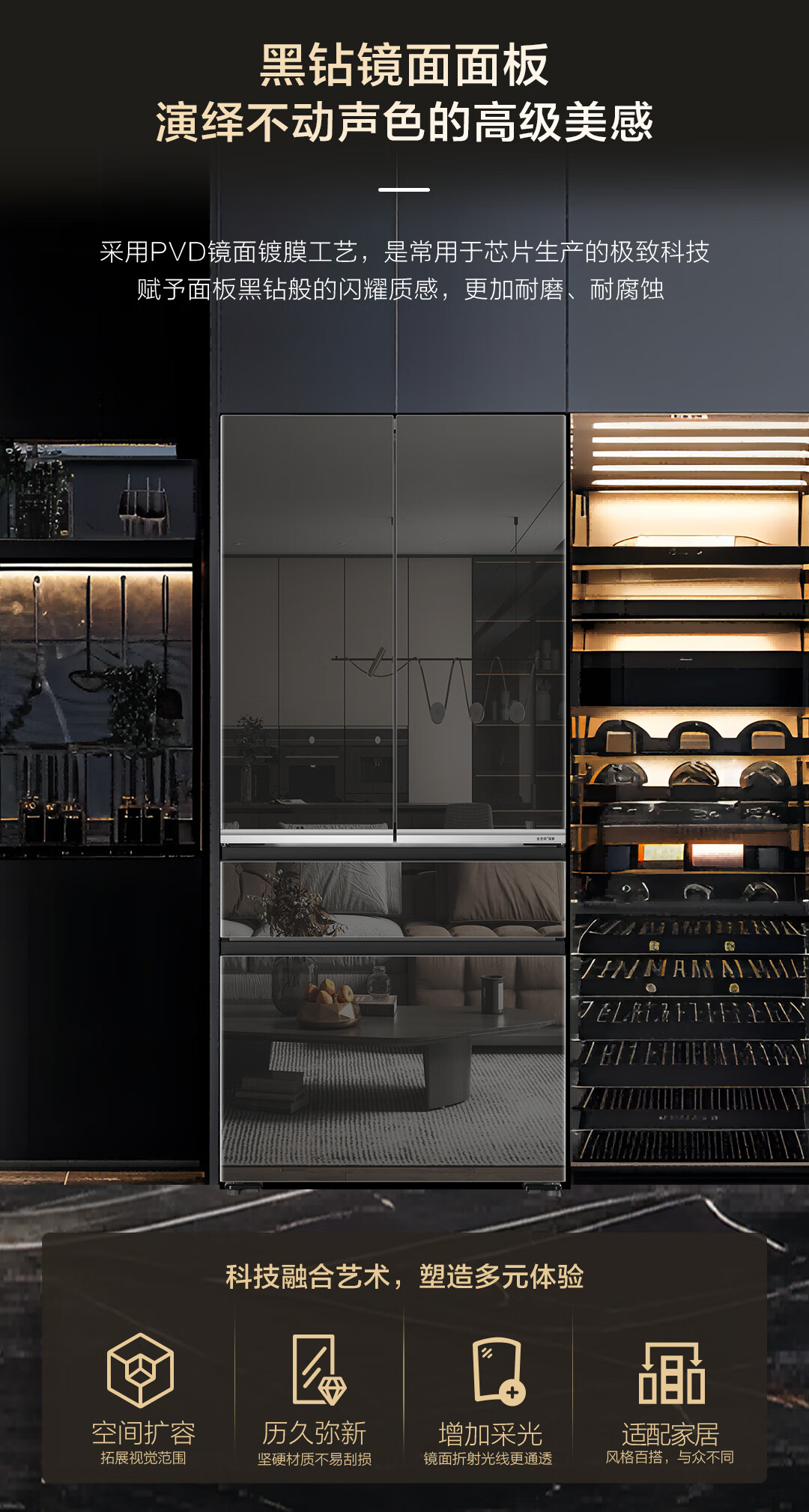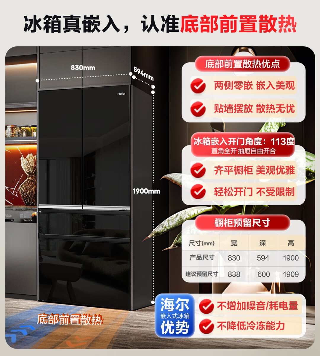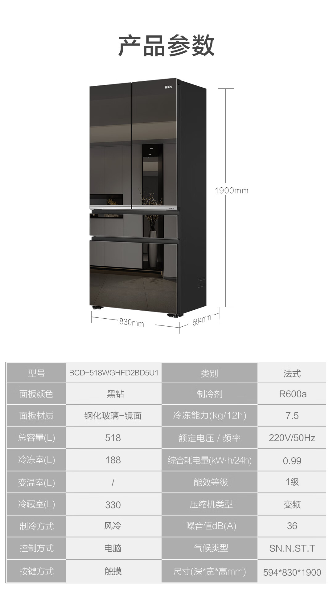 米兰系列-海尔518升和悦冰箱594mm专业超薄零嵌入式法式多门四开门家用电冰箱一级能效变频BCD-518WGHFD2BD5U1