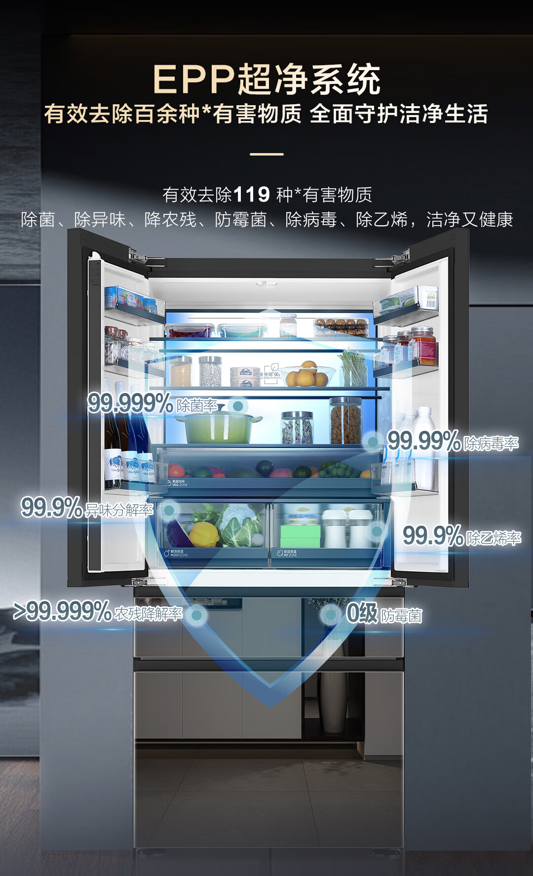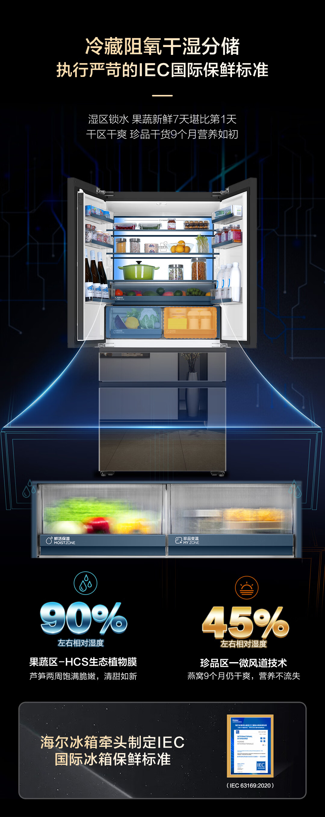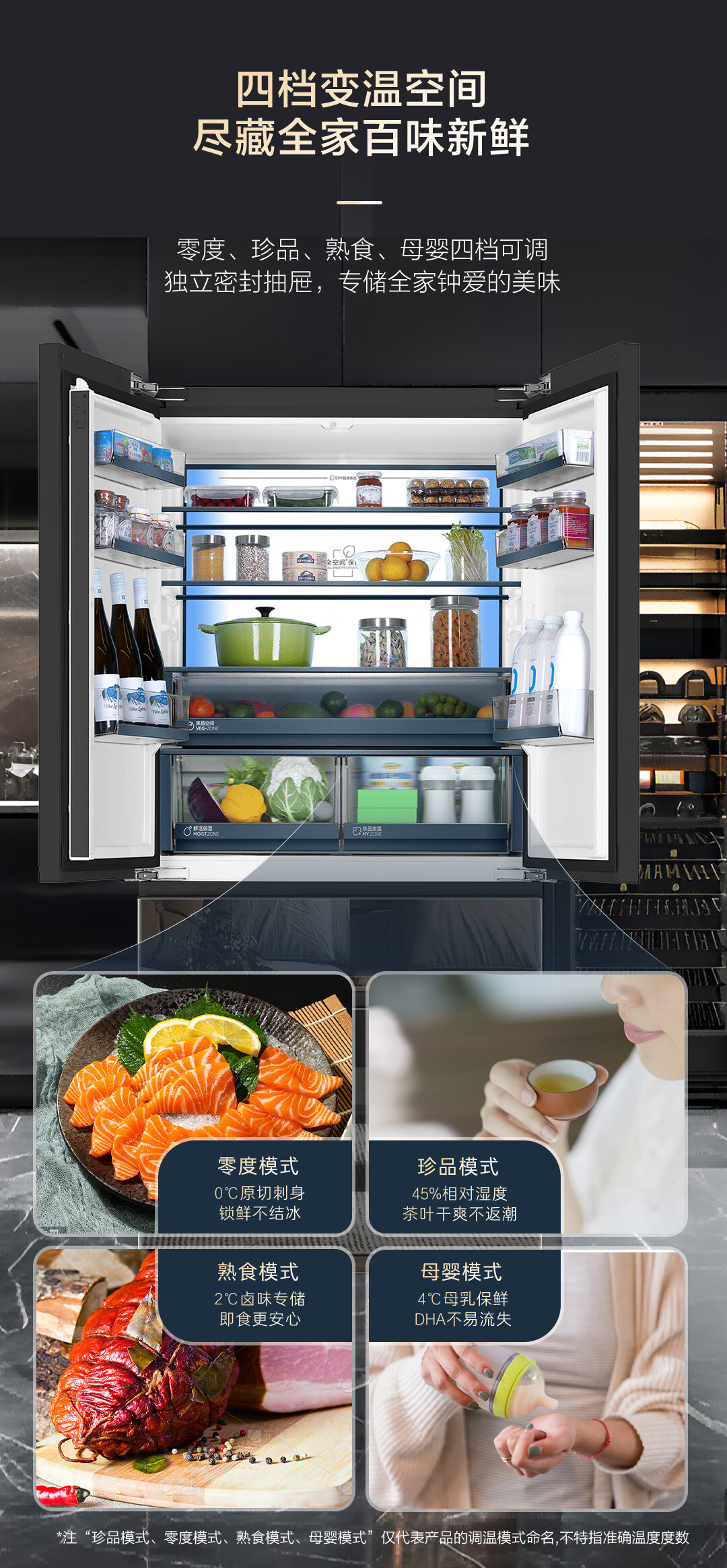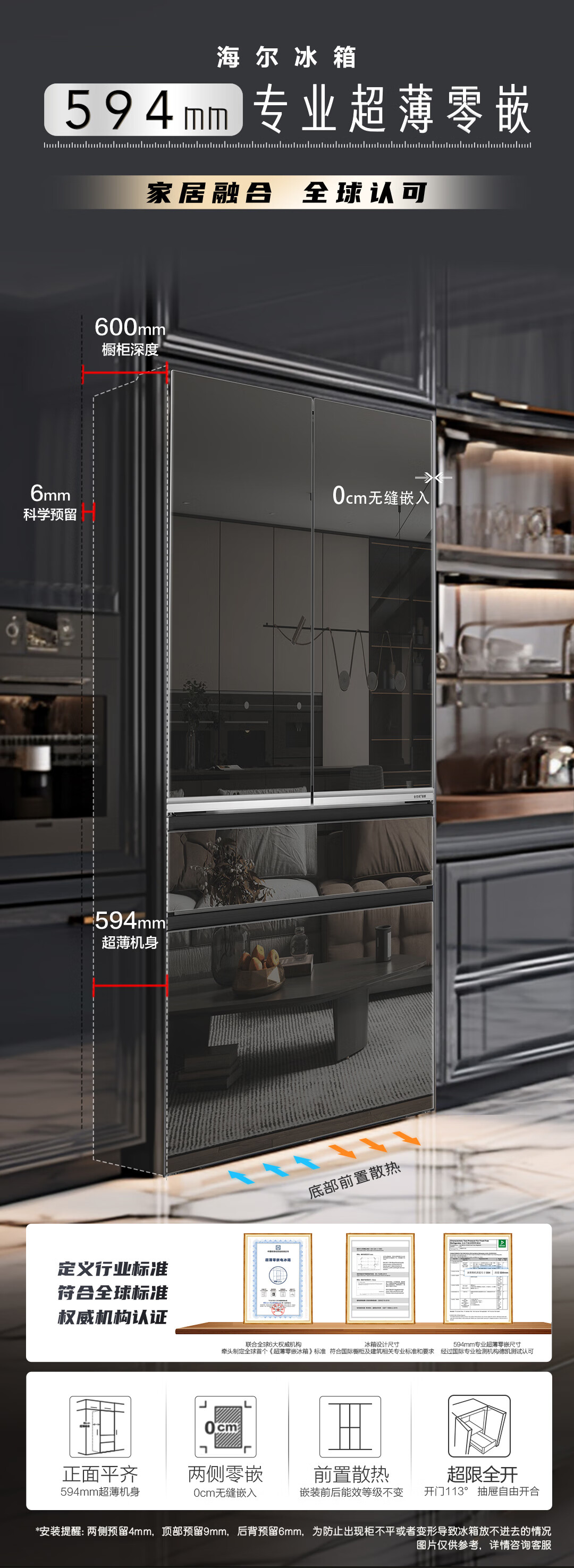 米兰系列-海尔518升和悦冰箱594mm专业超薄零嵌入式法式多门四开门家用电冰箱一级能效变频BCD-518WGHFD2BD5U1
