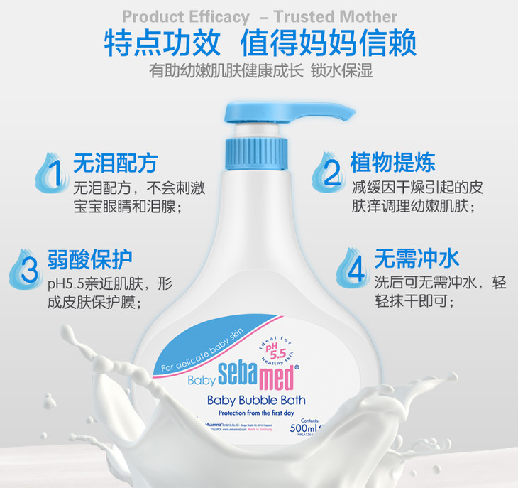 德国ebamed施巴婴儿泡泡沐浴露200ml/500ml