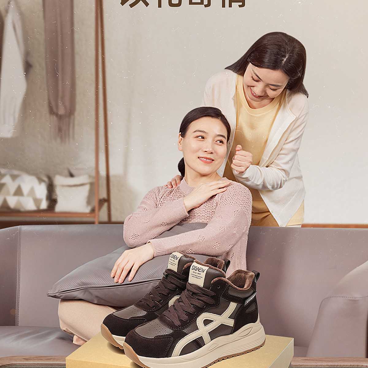 信诺妈妈鞋女加绒保暖棉鞋中老年舒适平底运动休闲鞋2025冬季新款X5M130-251D