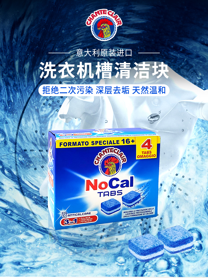 【中欧班列精选2盒】意大利进口大公鸡头洗衣机清洗除垢清洁块 240g/盒OC