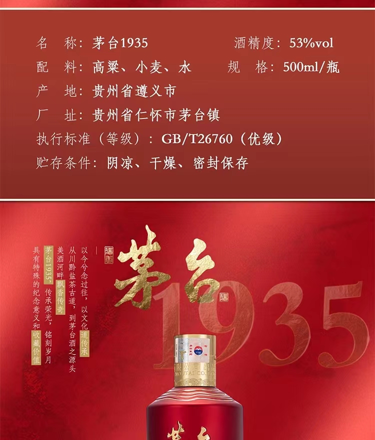 贵州茅台1935 酱香型白酒 53度,500ml