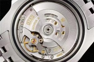 4)机芯。搭载了最新一代独立研发的3285自动机械机芯。这是一款真正意义上的3285机芯(市场上现有的3285机芯都是经旧版3186机芯改装而来的)GMT双时区针位与正品一致,位于在底部时针上面。通过调试时针快跳调整日历的功能。另外28800每小时振荡次数,顺磁性蓝色Parachrom游丝,高性能Paraflex缓震装置,所有参数均与正品一致。性能稳定,走时精准。