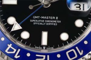 此外,表盘的设计继承了经典的劳力士风格,黑色与蓝色的配色搭配相得益彰,时针与分针的夜光处理也让整体在暗处依然保持良好的可读性。特别是在GMT功能上,使用了独特的红色指针,使得二次时区的读数更加直观便捷。