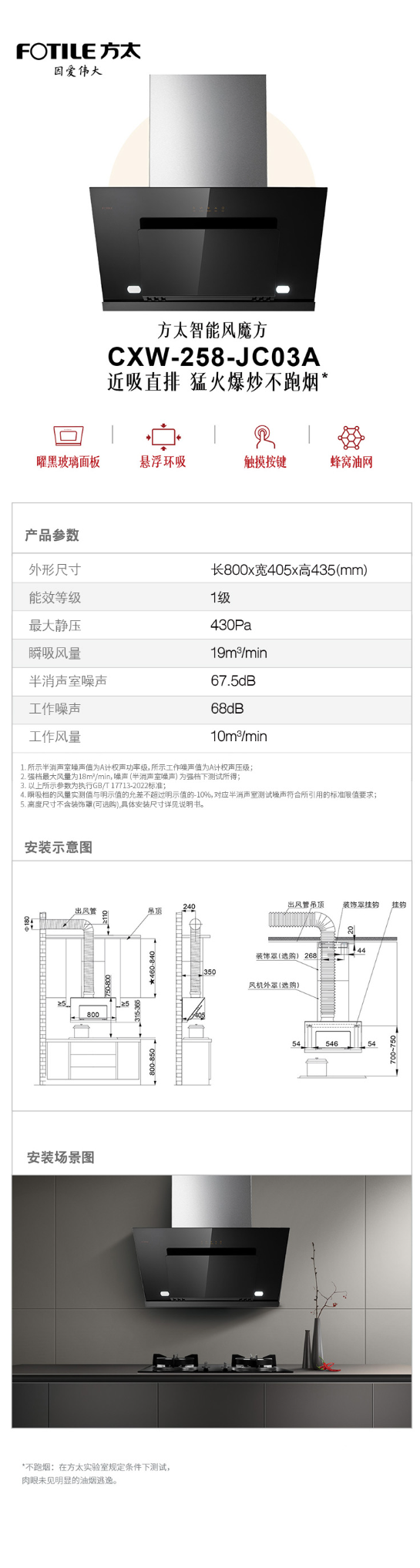 方太(11787) 近吸直排 猛火爆炒不跑烟* CXW-258-JC03A 一键瞬吸 近吸直排