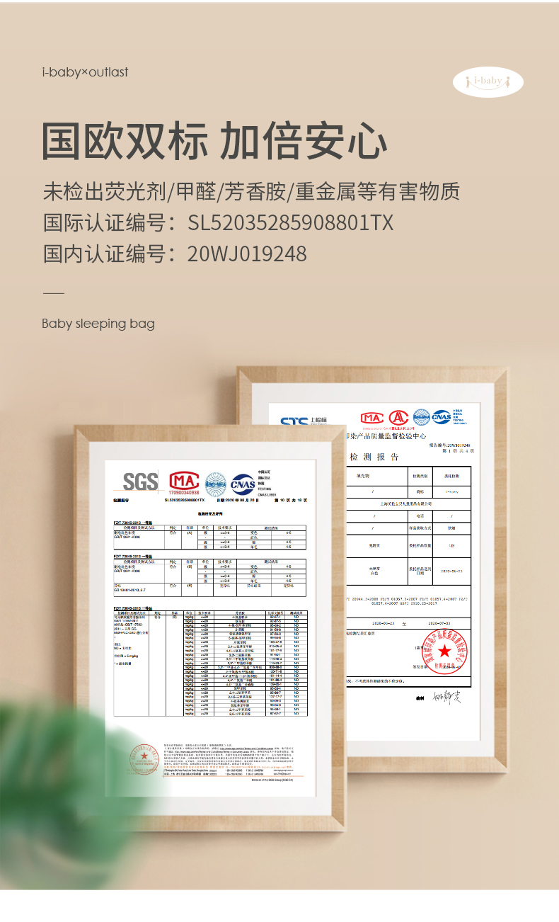 ibaby恒温睡袋 婴儿睡袋春秋冬宝宝防踢被儿童分腿睡袋四季通用款