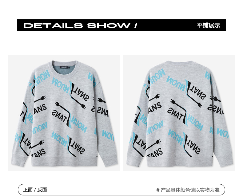 GXG男装 圆领基础保暖毛衫满印通勤内搭针织衫 2024冬季热卖