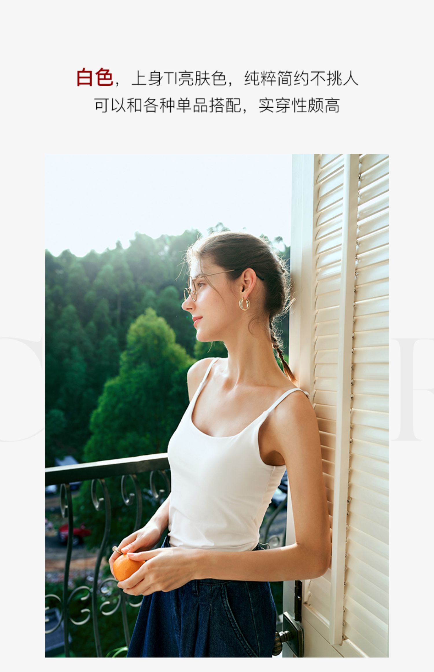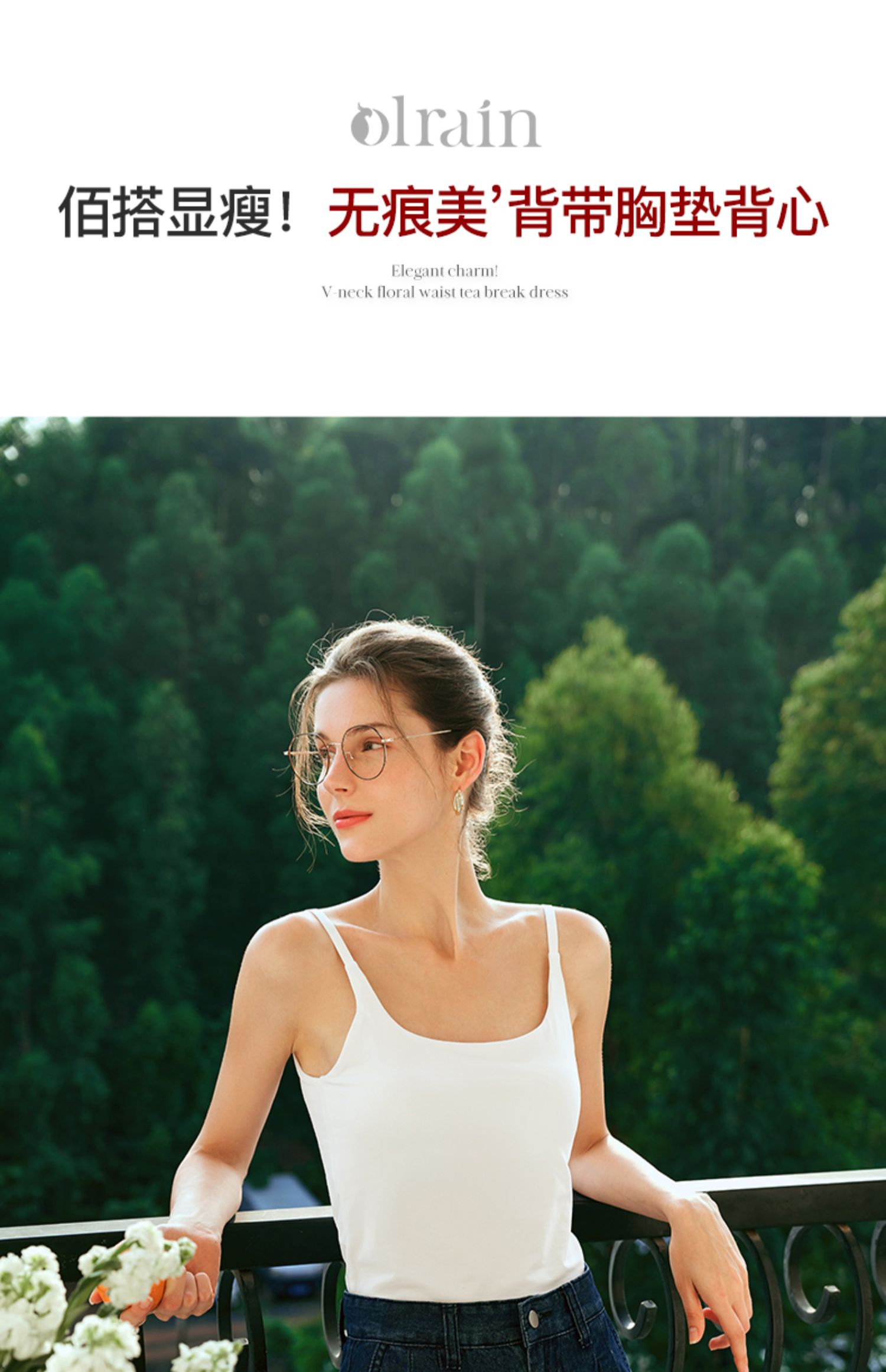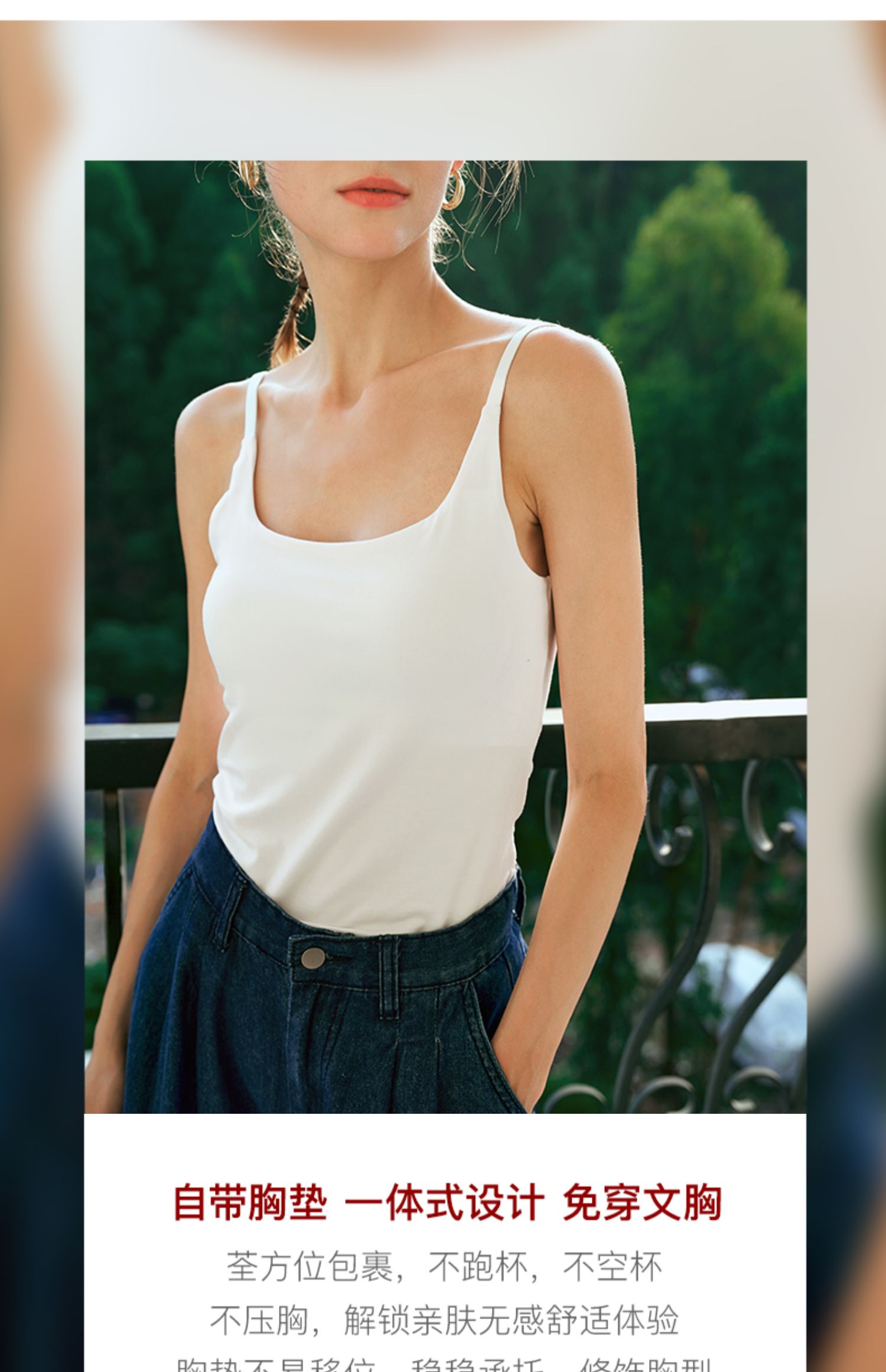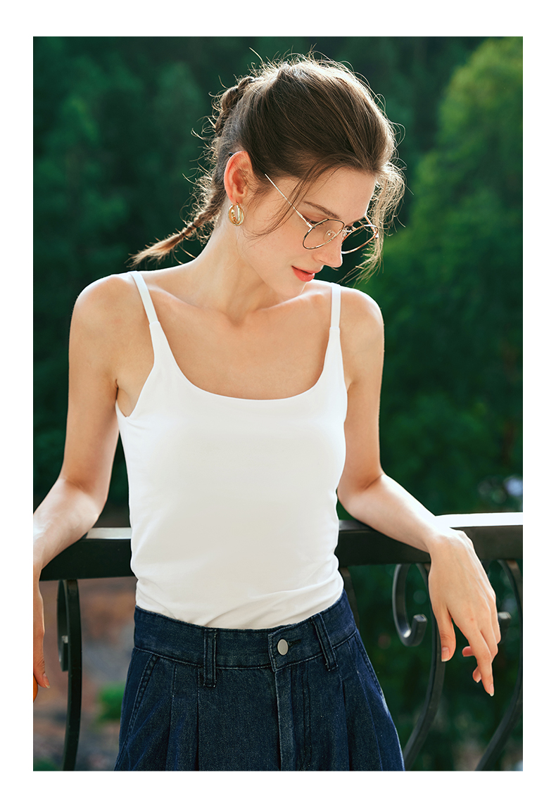 OLrain欧芮儿白色U领背心吊带女夏季2024年新款百搭自带胸垫美背