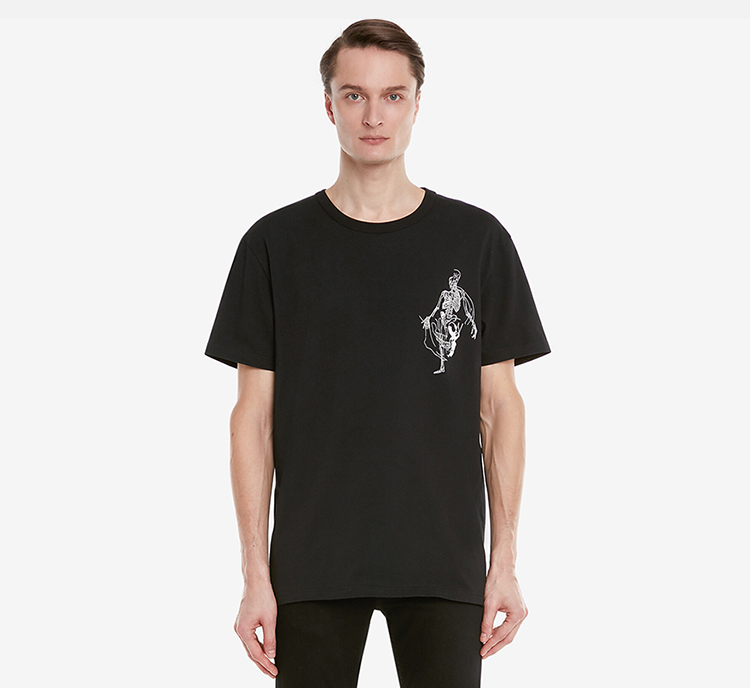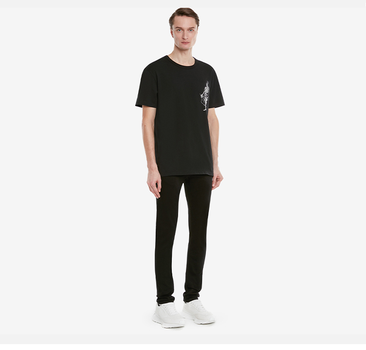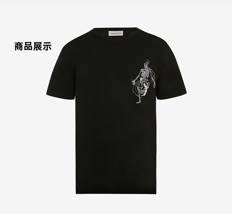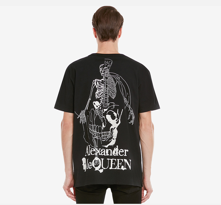 ALEXANDER MCQUEEN 亚历山大.麦昆 男士棉质骷髅图案丝网印花圆领短袖T恤 黑色 710937 QTZ32 0901