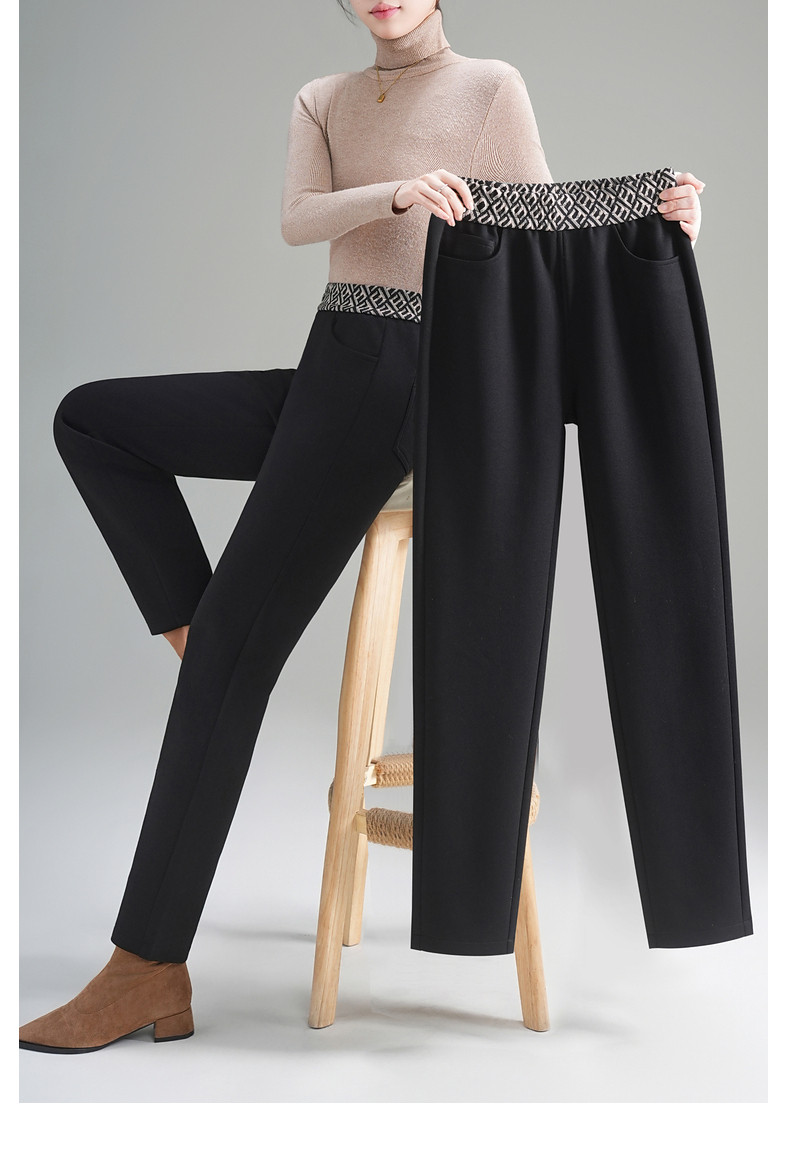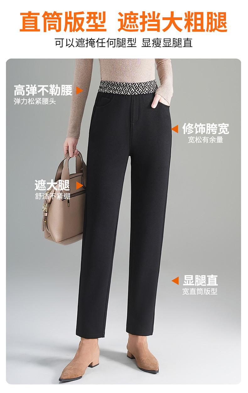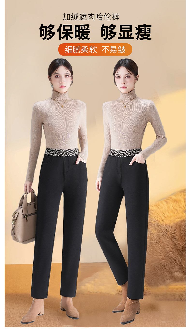 加绒加厚休闲老爹哈伦裤女大码胖mm高腰显瘦裤子新款锥形萝卜裤冬