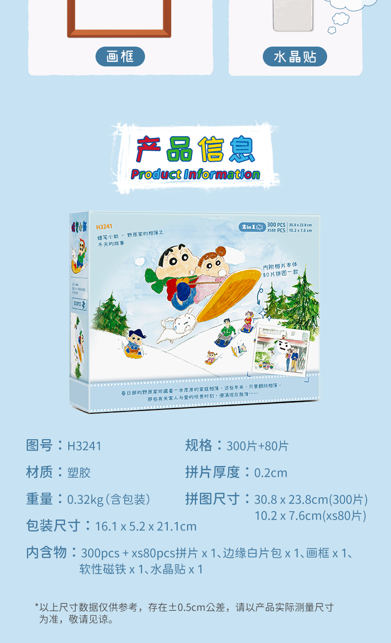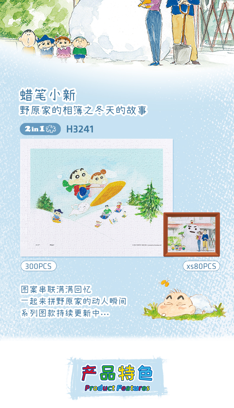 【折扣商品 不退不换】300片 平面塑料拼图 H3241 蜡笔小新-野原家的相簿之冬天的故事【内附80片拼图】