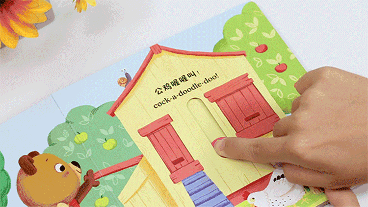 这一套书每本的主题都不同,海上冒险、太空遨游、参观动物园,不同的故事配上不同的互动机关,小手推一推、拉一拉、转一转、滑一滑,就能看到意想不到的惊喜,既锻炼了小手的灵活性,又鼓励宝宝主动探索。郎朗上口的中英文韵律歌谣,非常适合用来做英文启蒙。