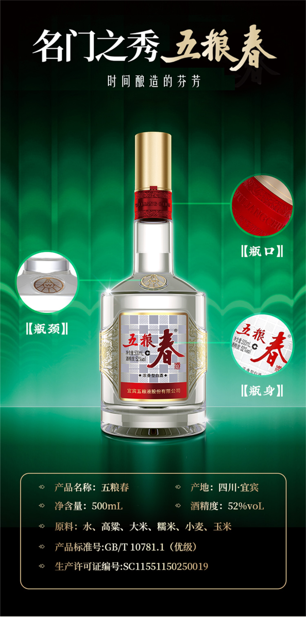 五粮液 五粮春 第二代 浓香型白酒 52度 500ml 单瓶装