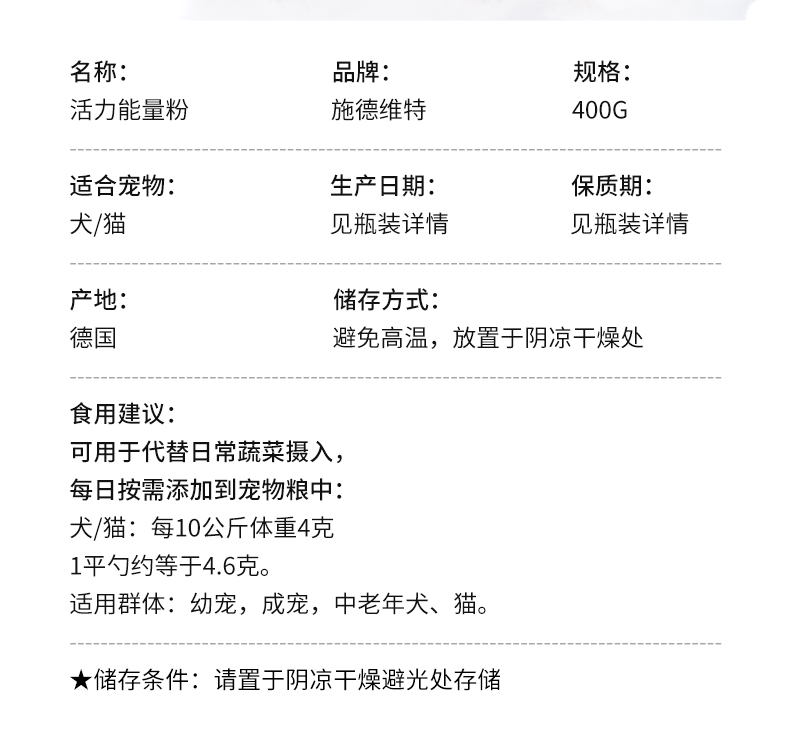 【新品】德国 cdVet 施德维特 活力能量粉 400g