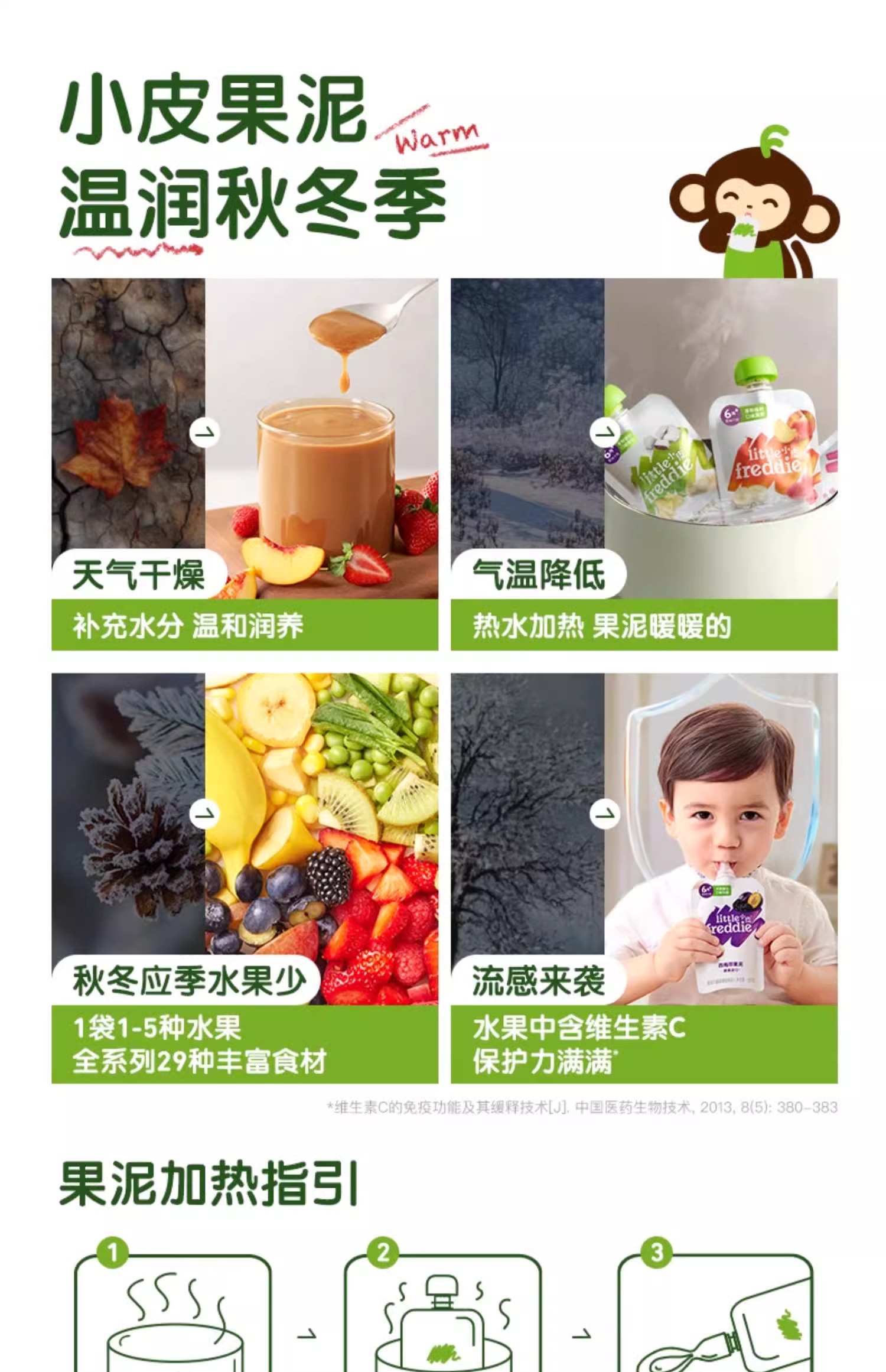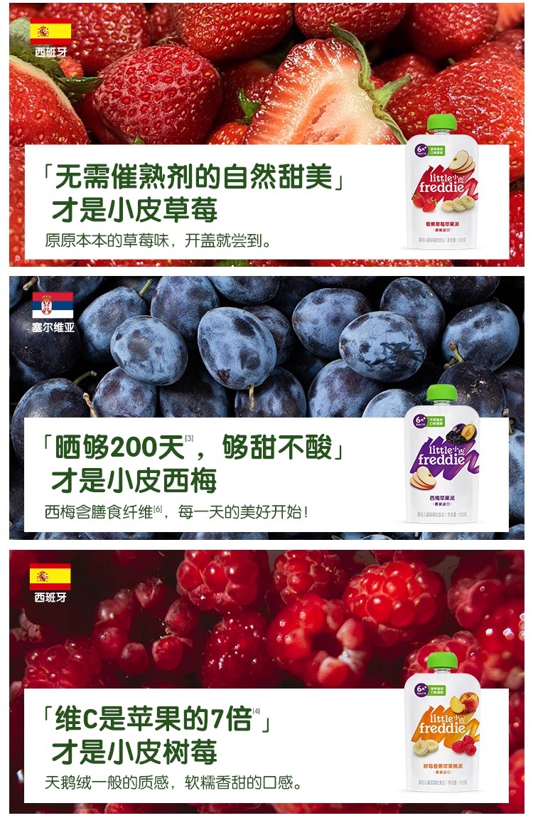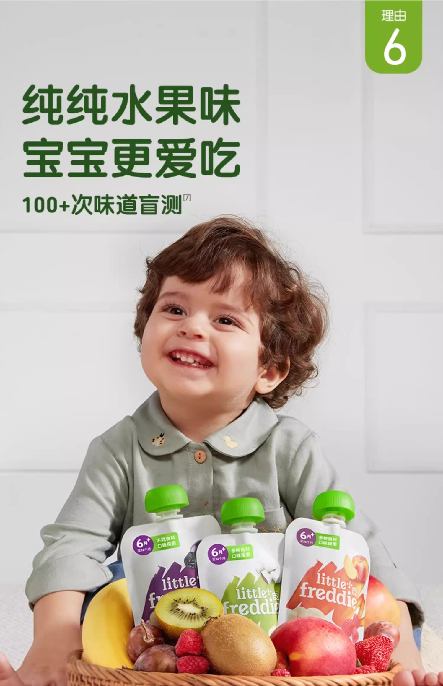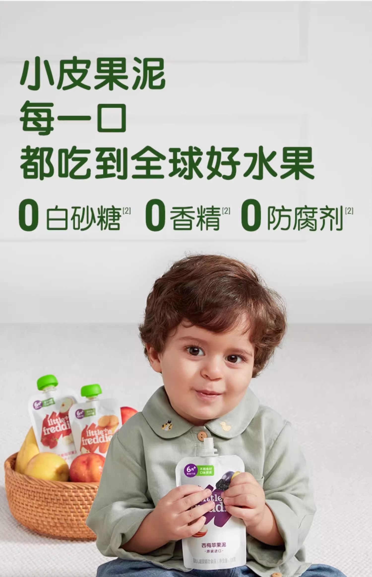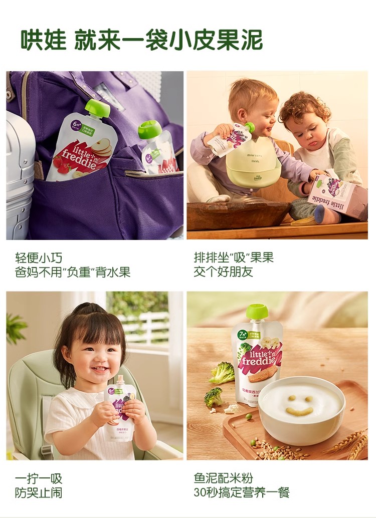 英国Little Freddie 小皮果泥 香蕉猕猴桃梨苹果泥 100g 宝宝辅食零食