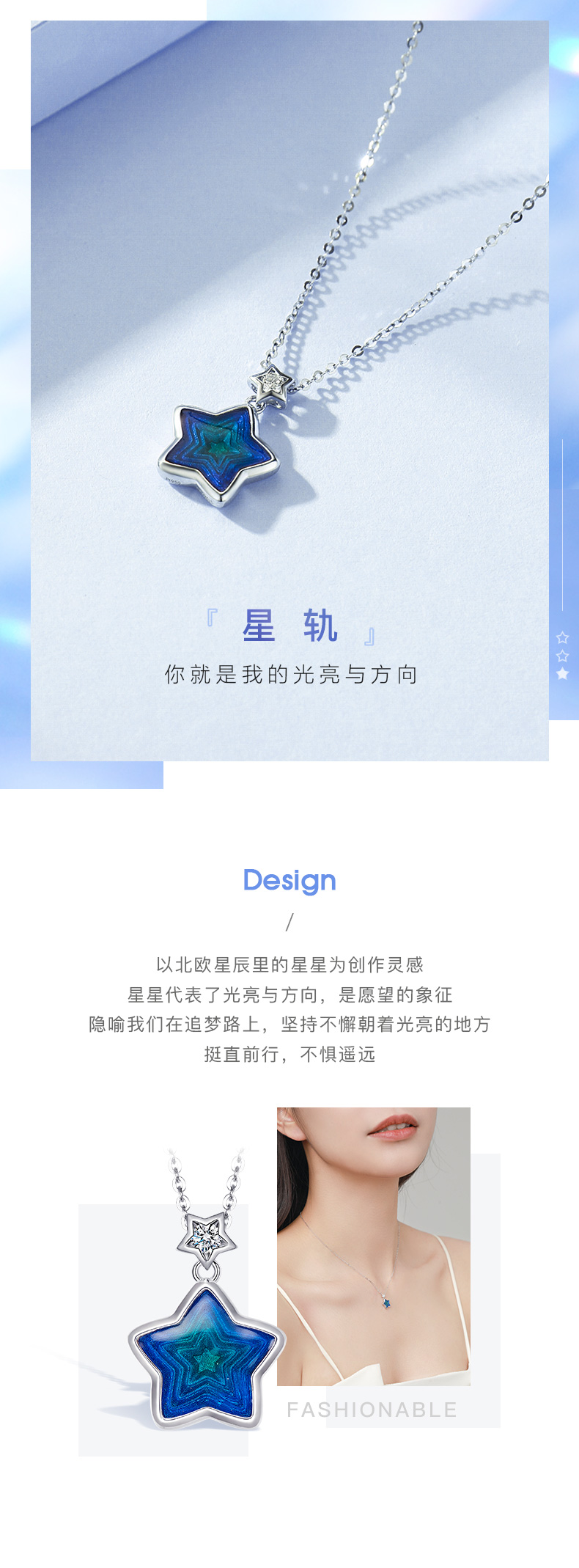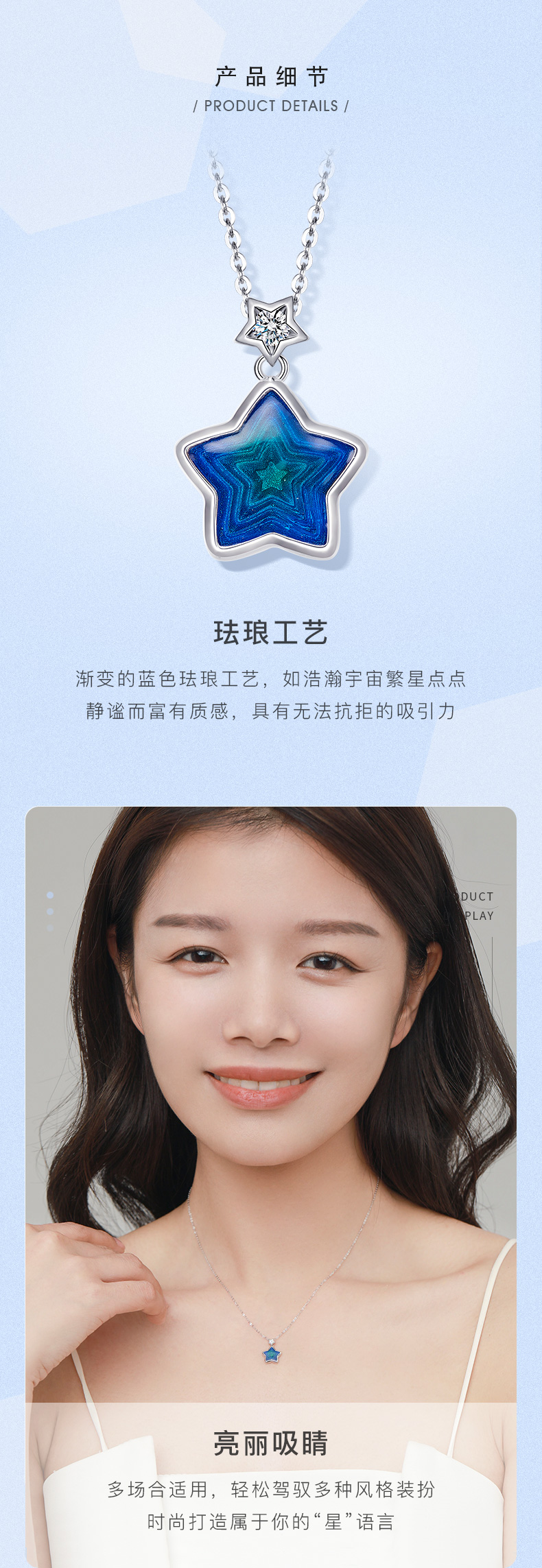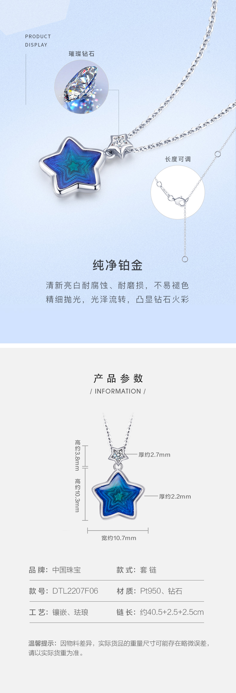 PT950铂金钻石星轨套链 星星珐琅项链