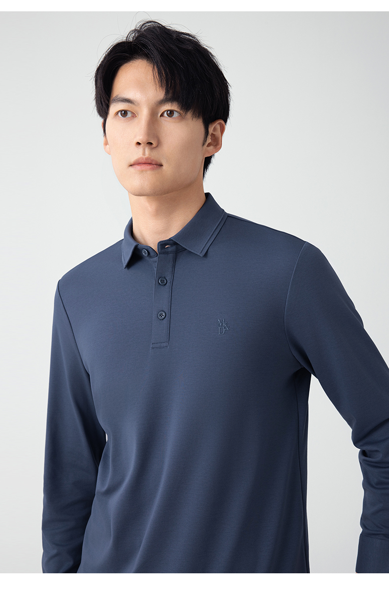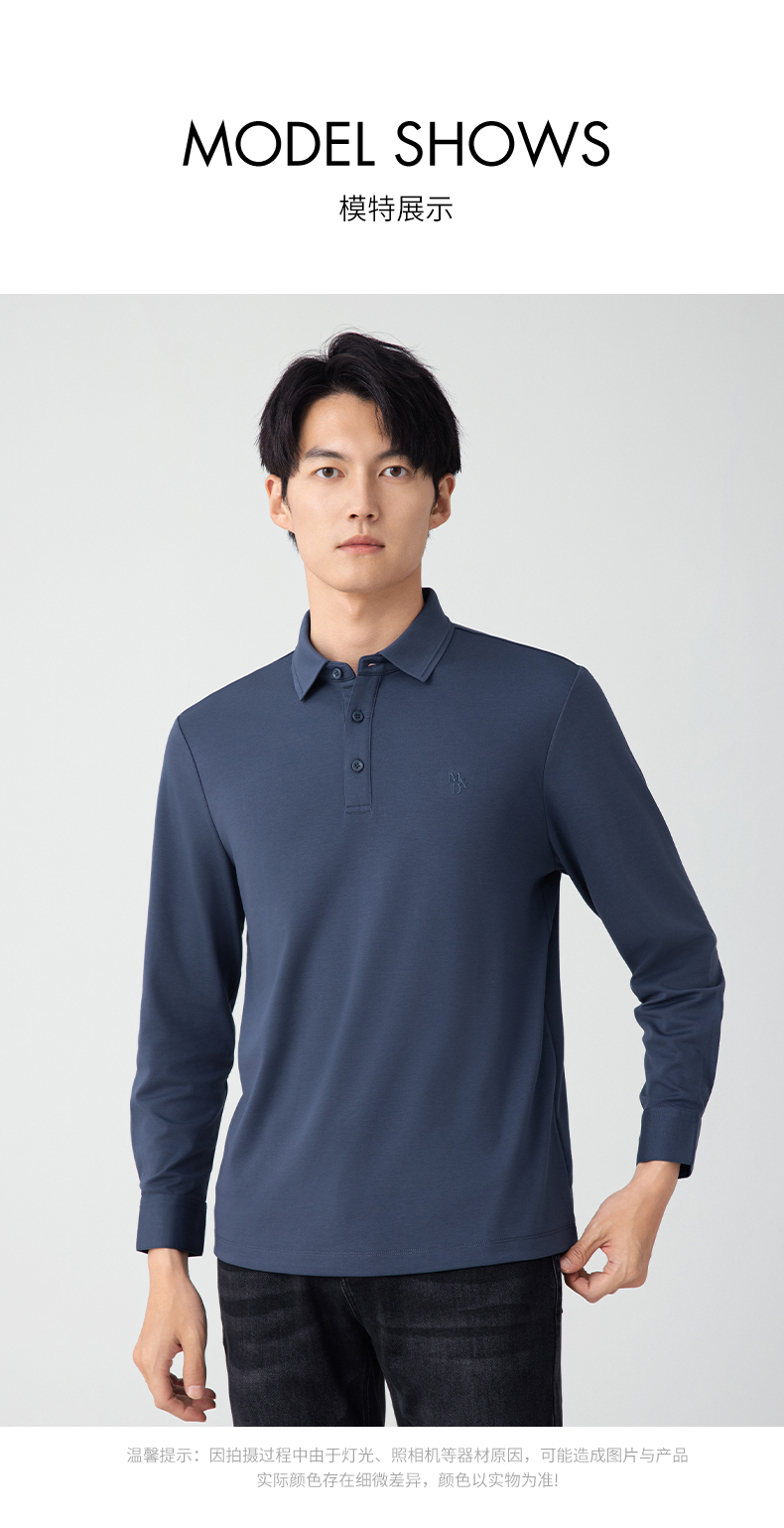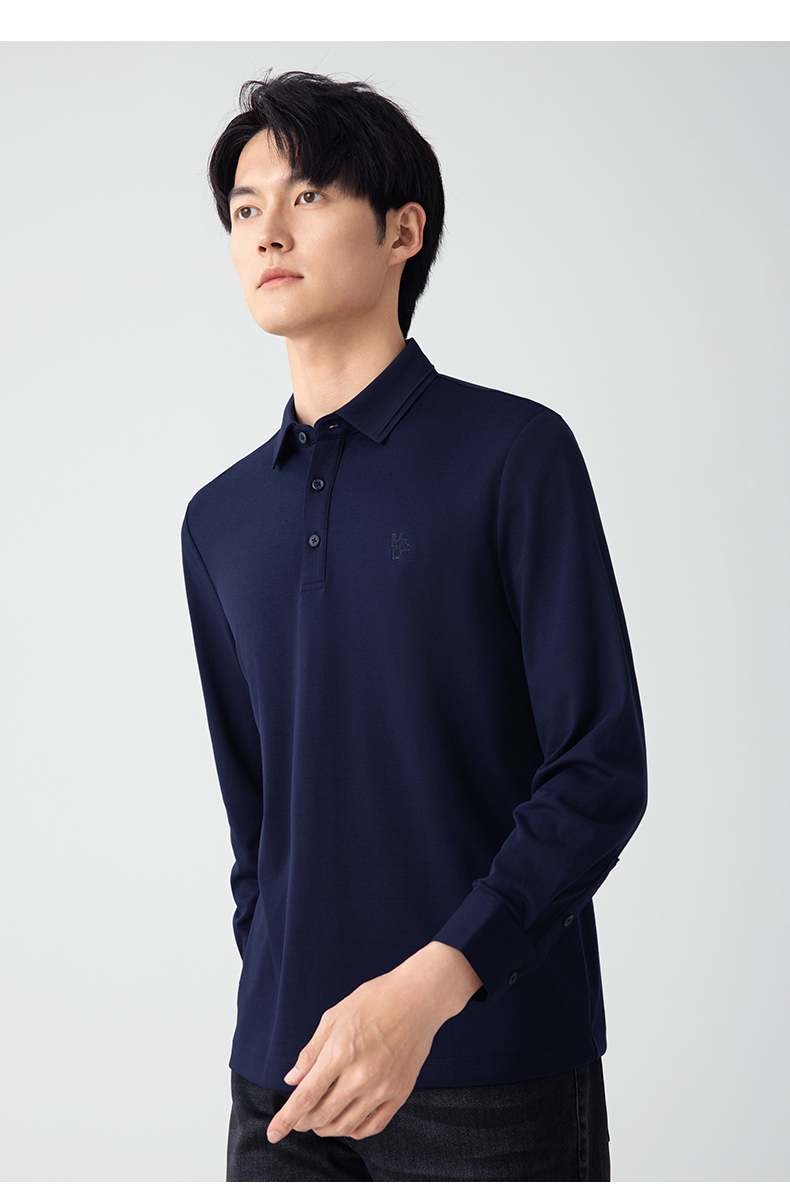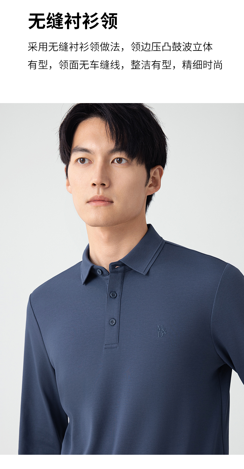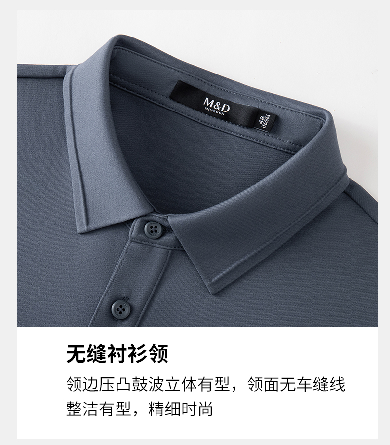 【名盾】无缝衬衫领长袖Polo衫,立体有型,桑蚕丝混纺面料,更柔软舒适,透气干爽M0CL11695B