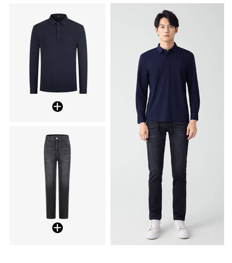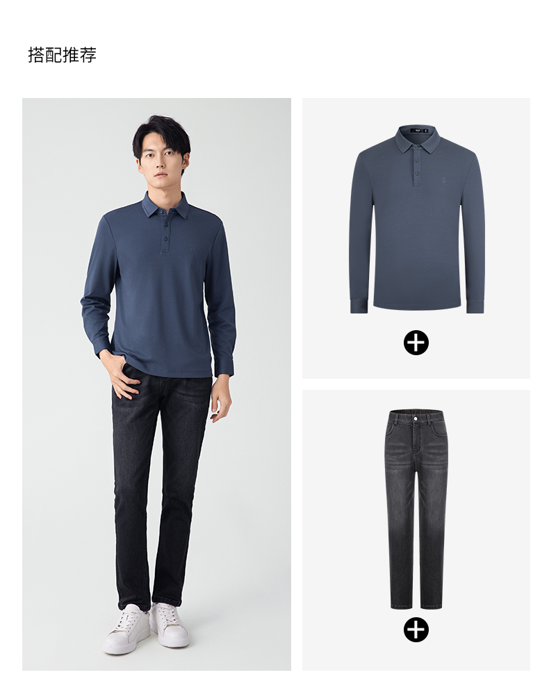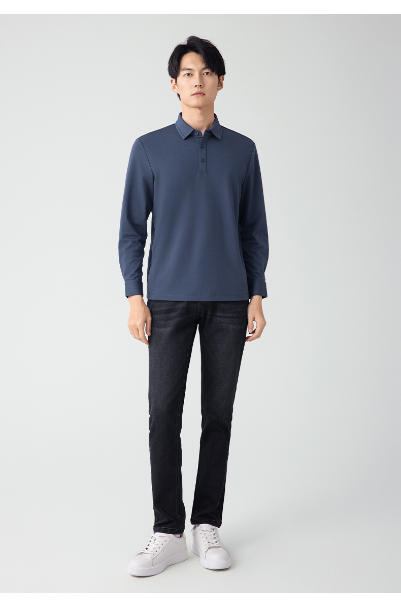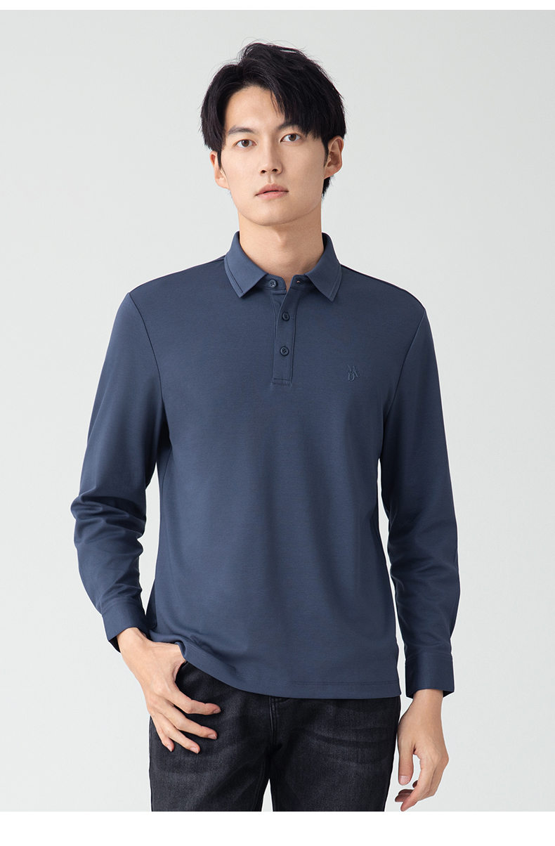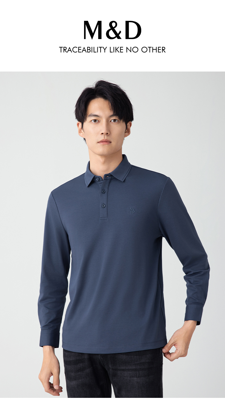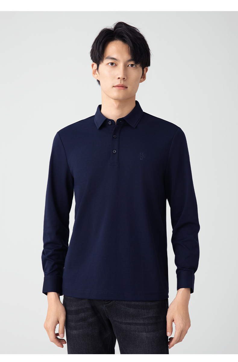 【名盾】无缝衬衫领长袖Polo衫,立体有型,桑蚕丝混纺面料,更柔软舒适,透气干爽M0CL11695B