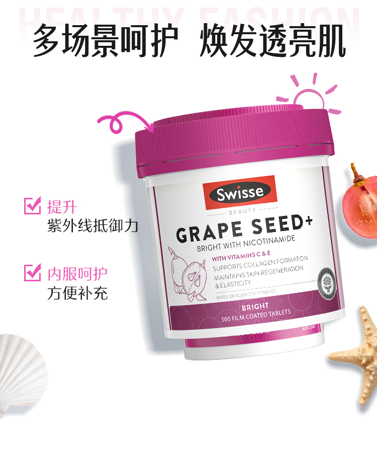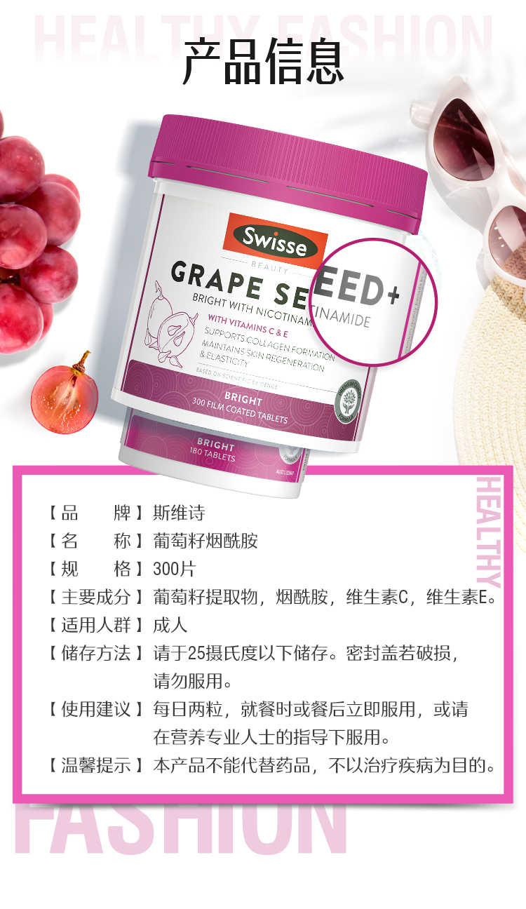 Swisse烟酰胺葡萄籽精华300粒/瓶★