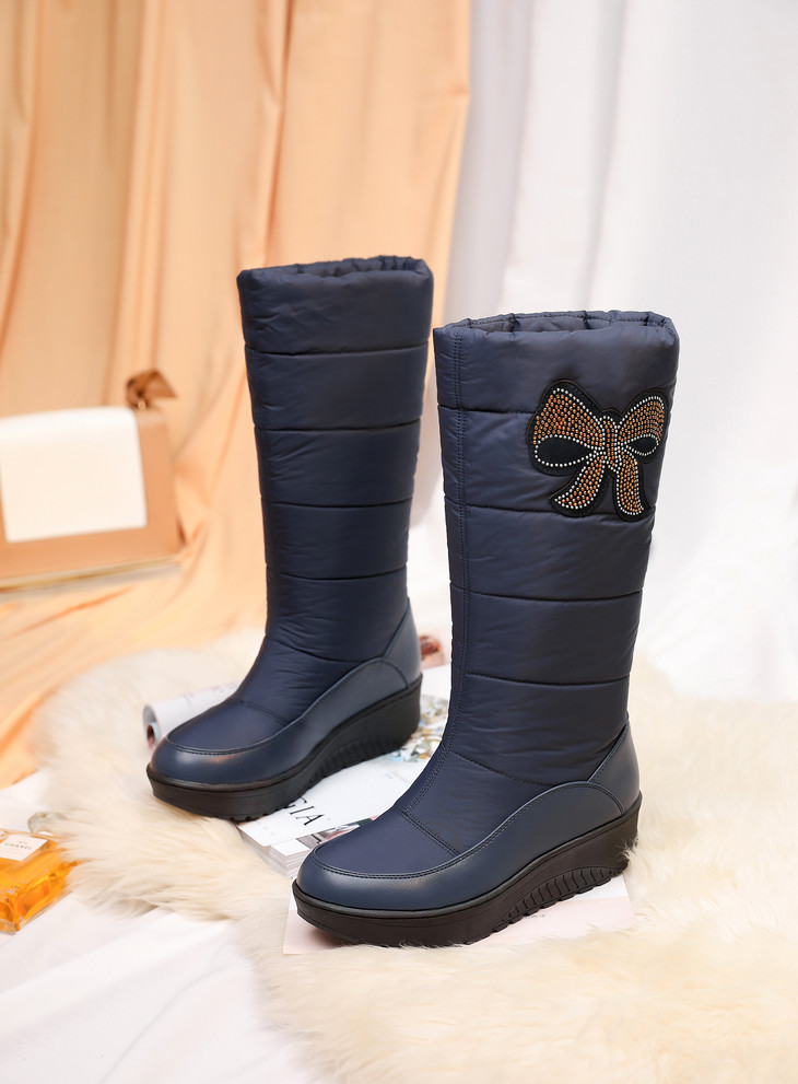 大码雪地靴羽绒布面防水棉鞋,厚底中筒加绒棉靴MJM101B