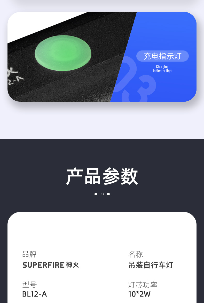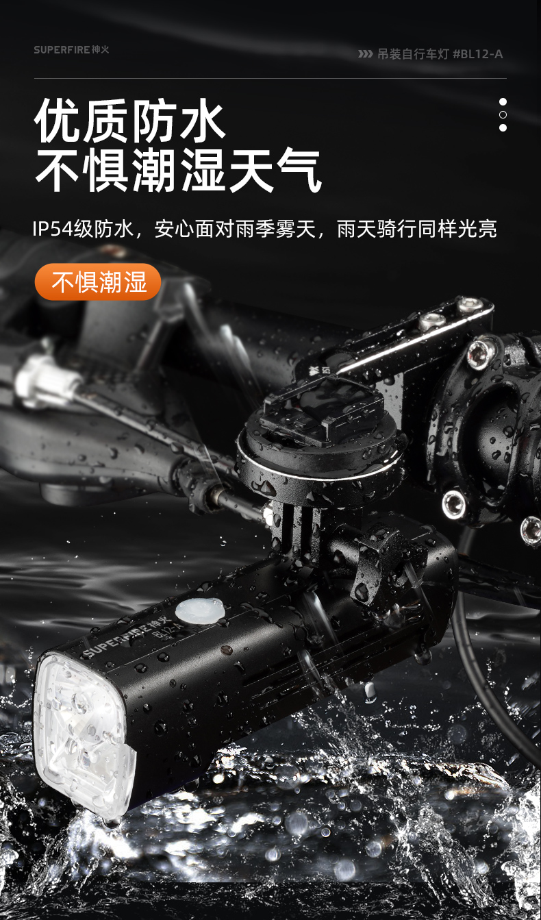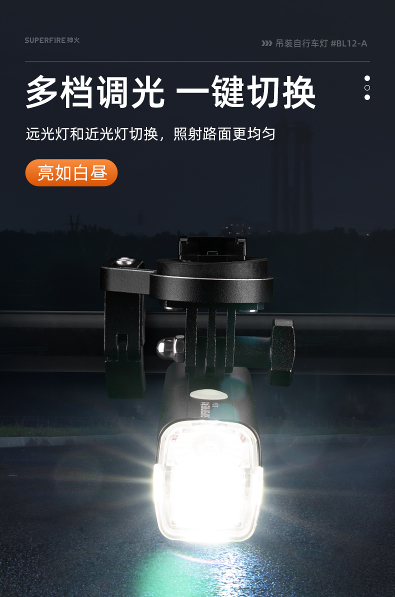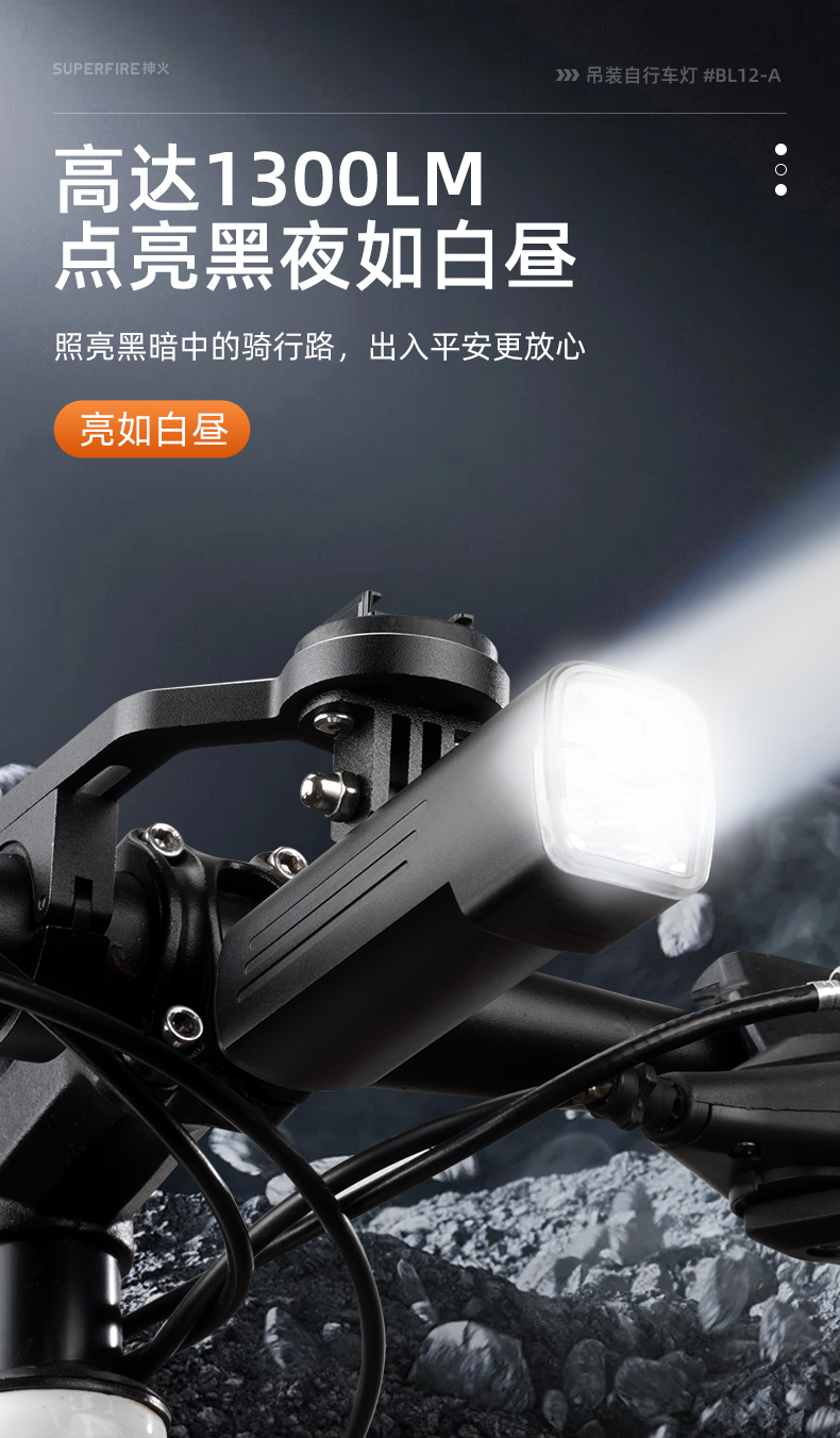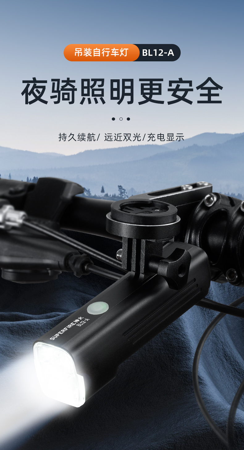 SUPERFIRE神火BL12-A吊装自行车灯前灯远射强光充电山地车骑行装备单车