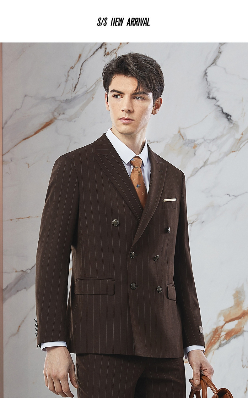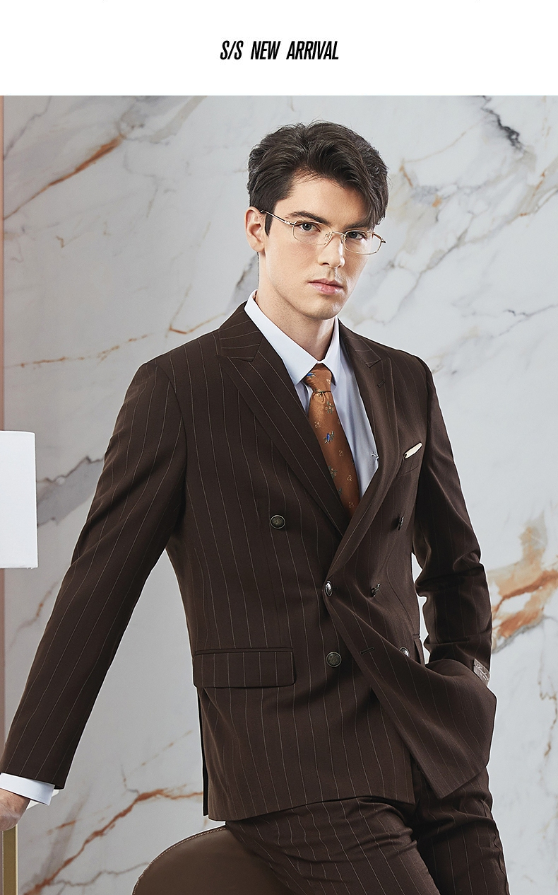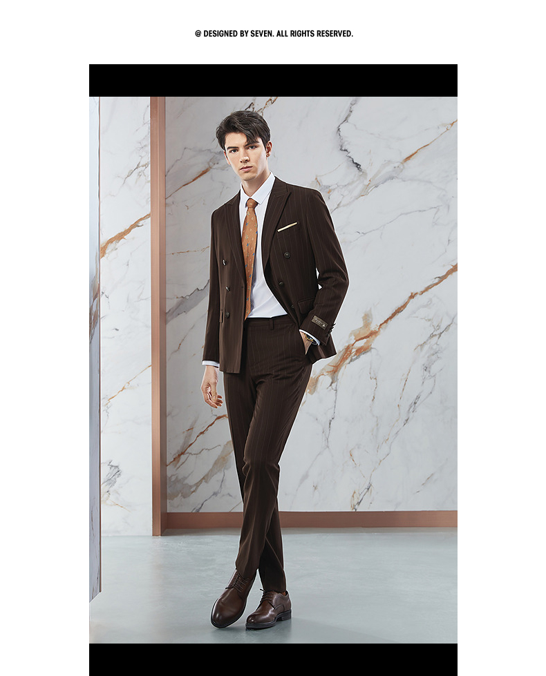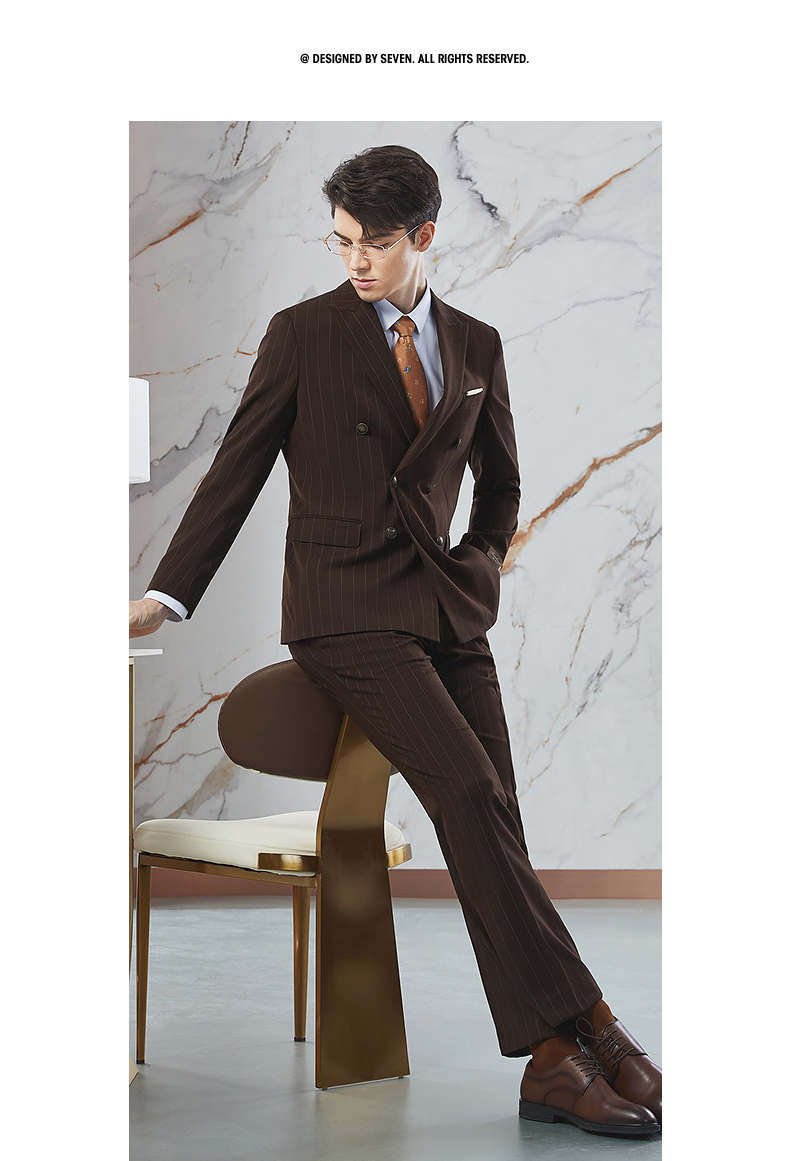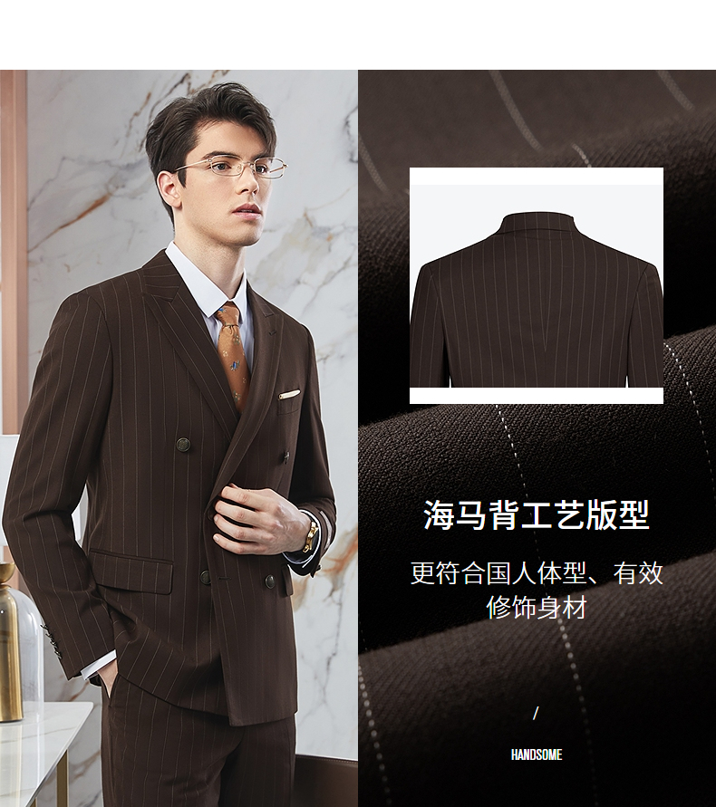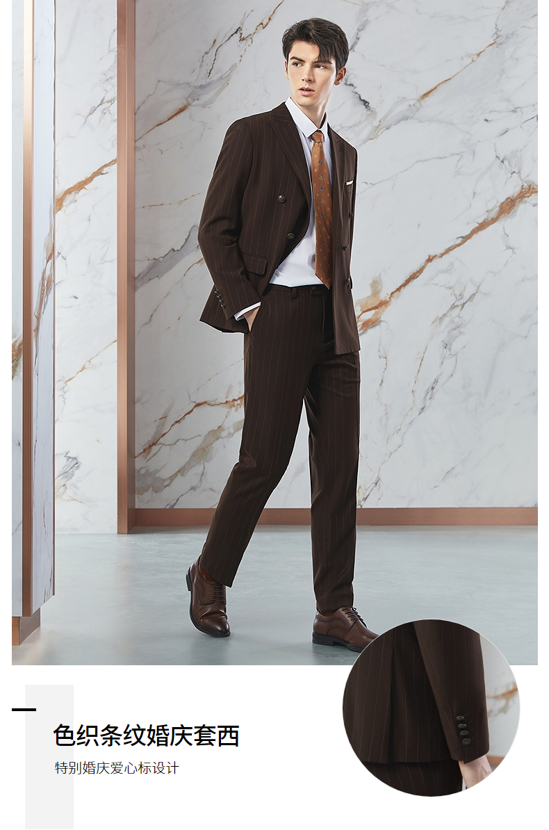 柒牌男士条纹西服套装男春季新款商务双排扣职业西装结婚新郎礼服 126C71000