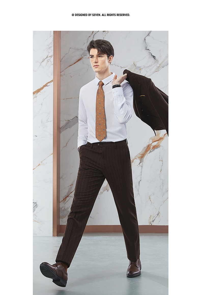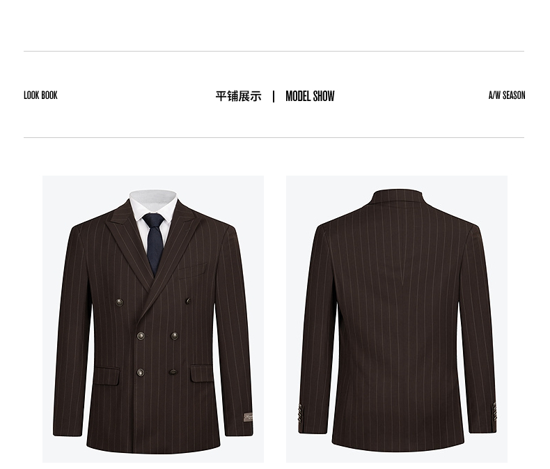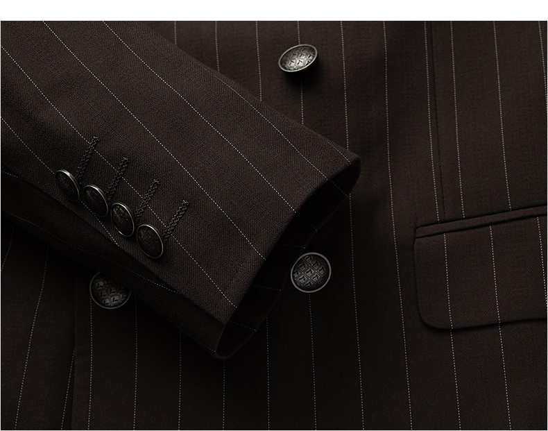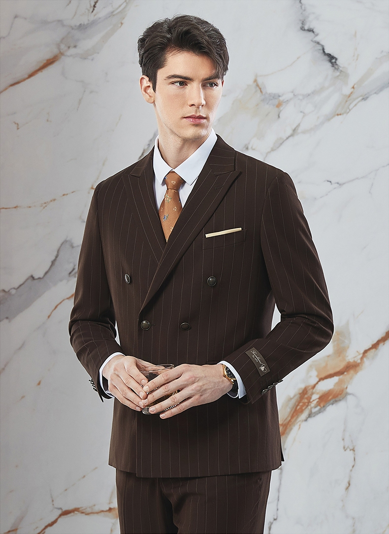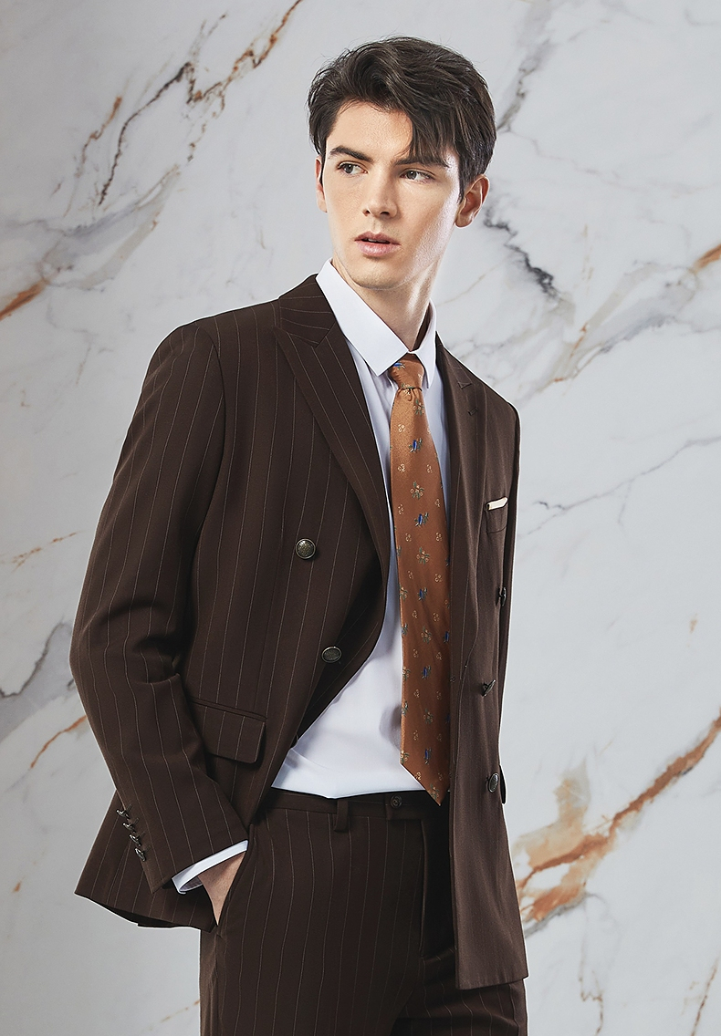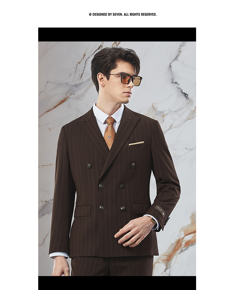 柒牌男士条纹西服套装男春季新款商务双排扣职业西装结婚新郎礼服 126C71000