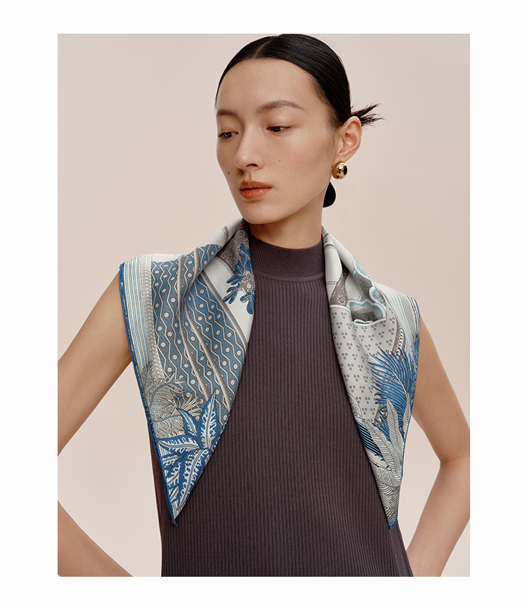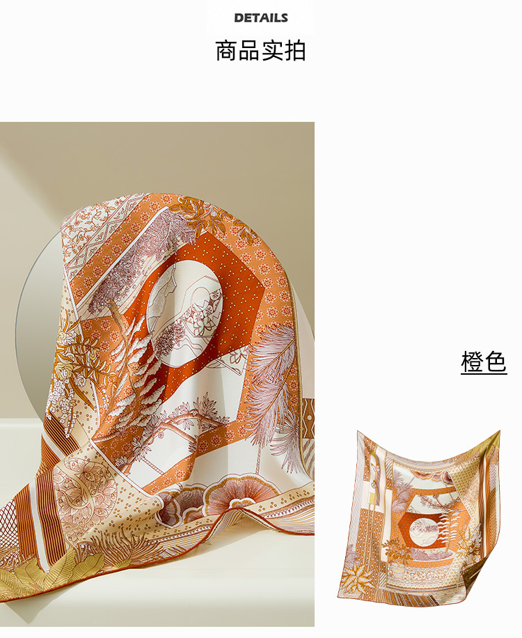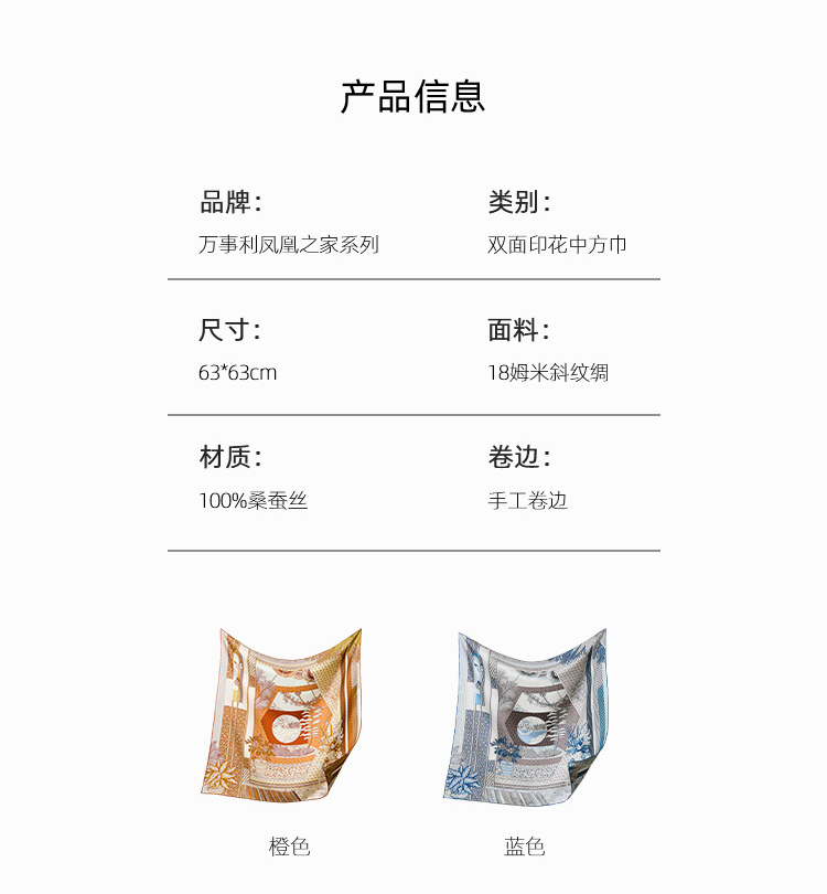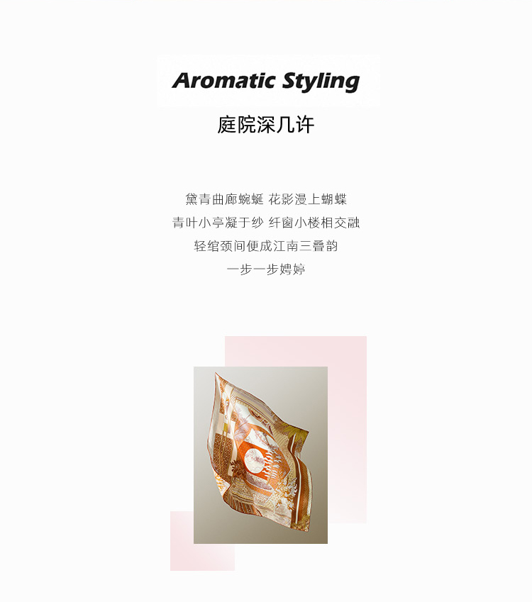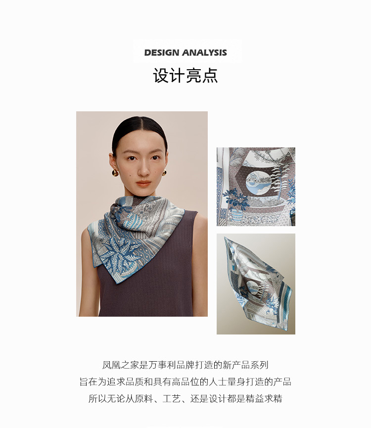 凤凰之家双面印花中方巾63厘米-庭院深几许