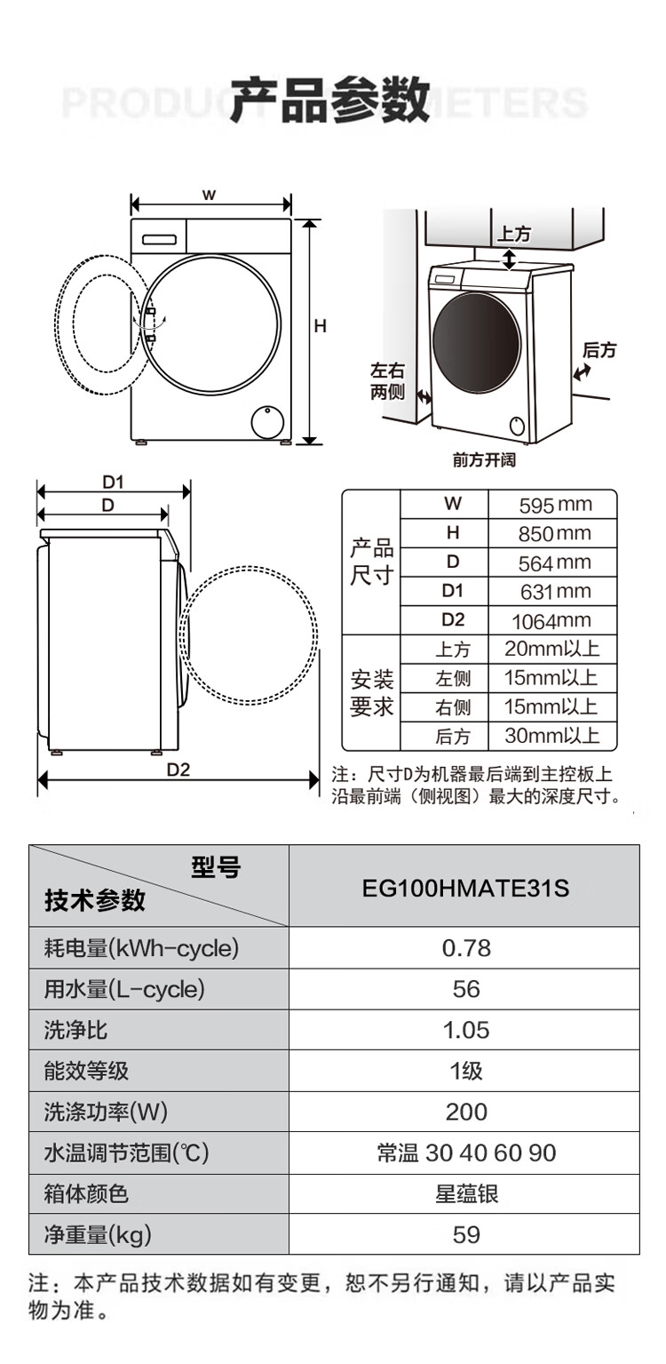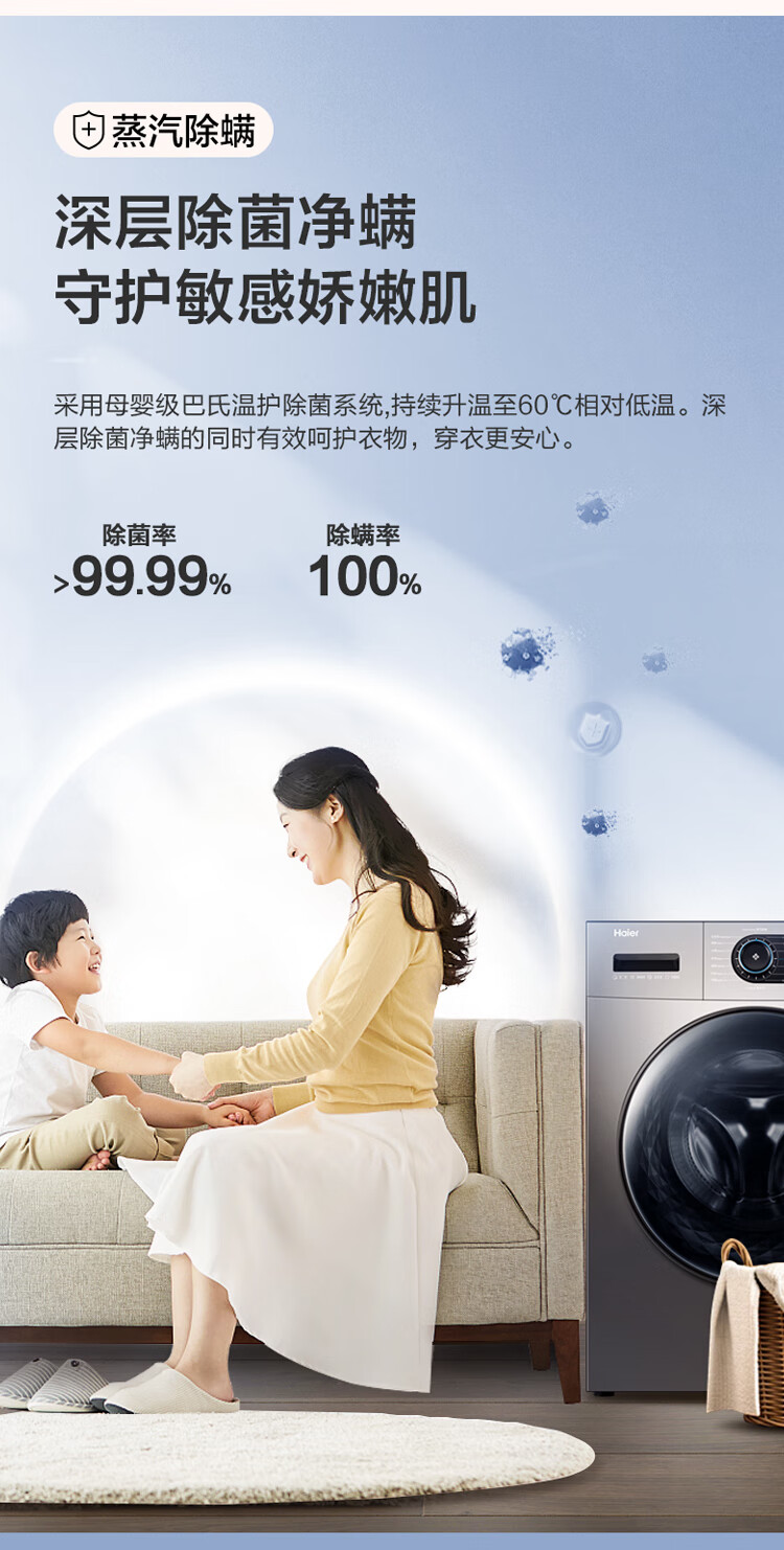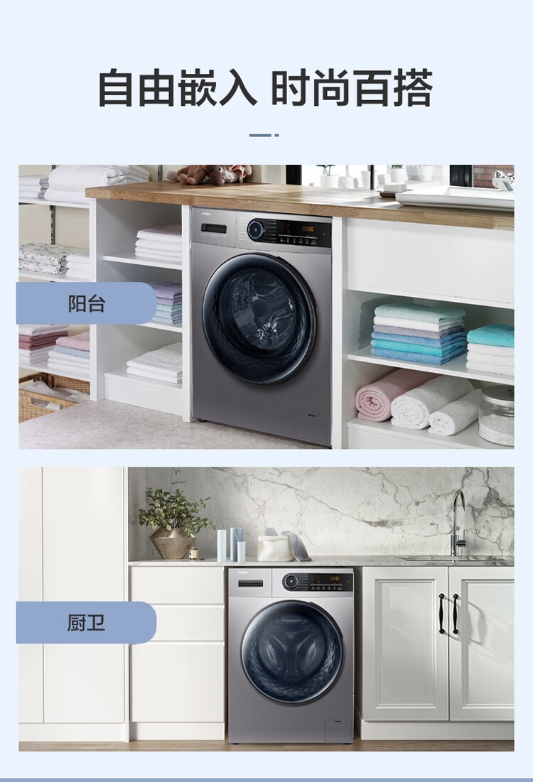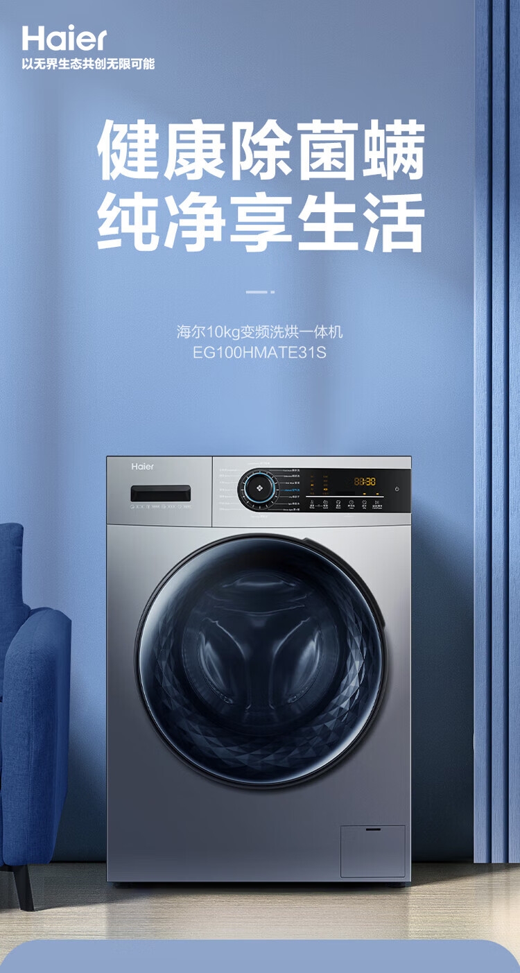 海尔(Haier)滚筒洗衣机全自动 10公斤洗烘一体大容量 BLDC变频 超薄564mm EG100HMATE31S