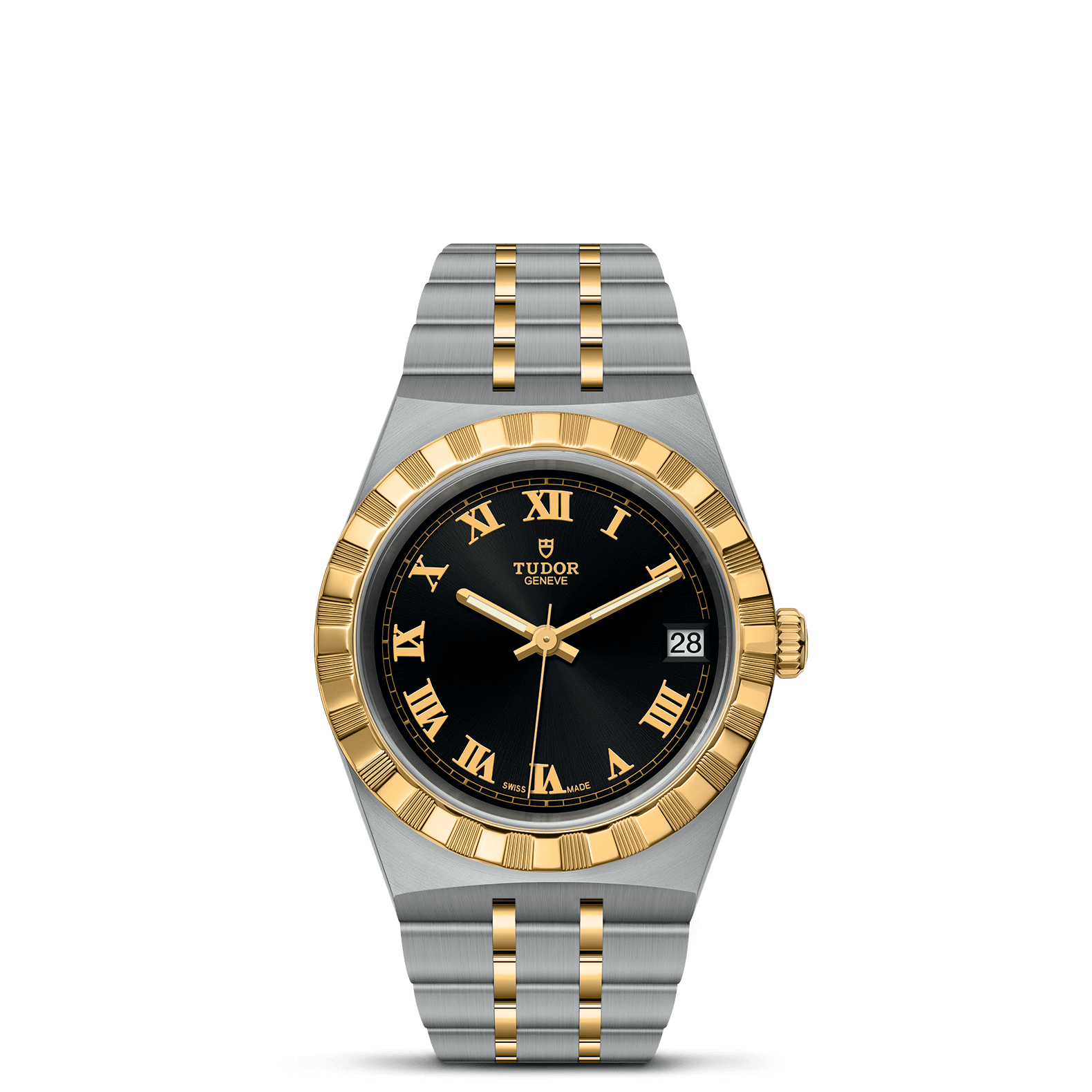 旋入式上链錶冠,饰以帝舵表标志;精钢覆有0.1毫米18K黄金薄层
