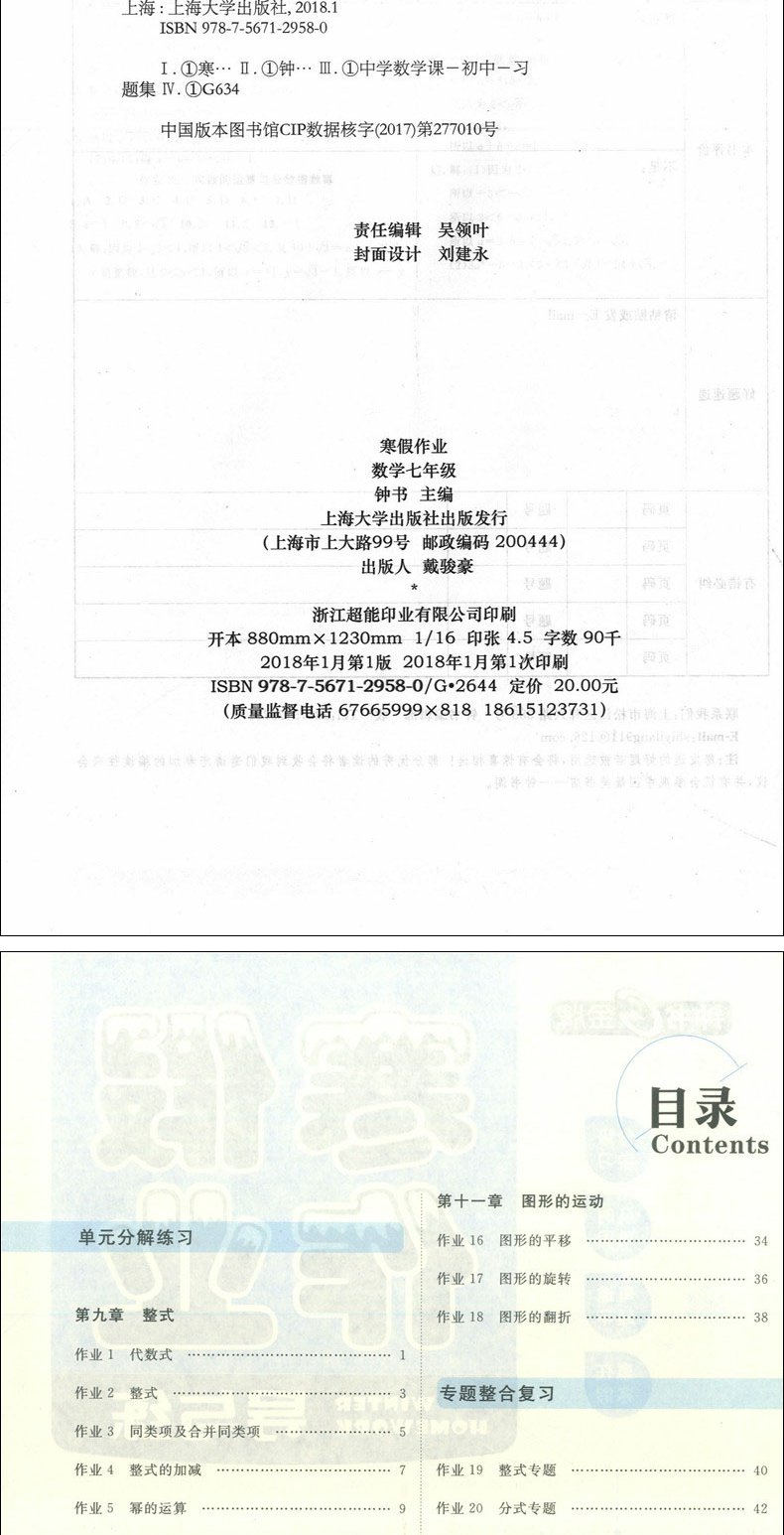 正版现货 钟书金牌 寒假作业导与练 数学 七年级/7年级 上海专版 上海大学出版社 上海初中生寒假作业