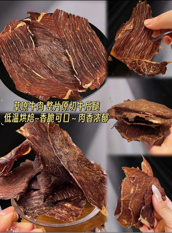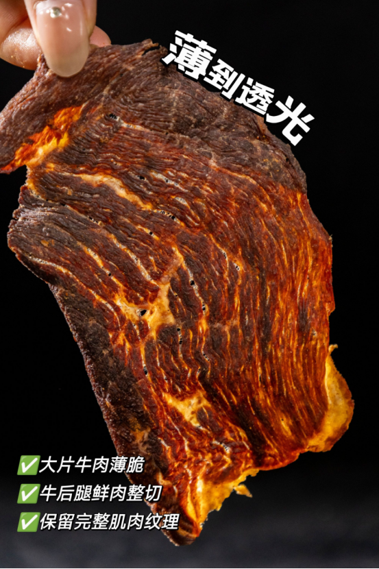 🔥爆火全网牛肉薄脆片!像薯片一样薄脆的牛肉干 📢没有吃过的宝宝们赶紧冲!!! ✅100%牛后腿肉,原肉整切,低温烘烤 ✅不添加大豆蛋白、淀粉、杂肉、肉骨泥 每一口都是醇香的真牛肉 ‼5斤新鲜牛后腿肉才能出1斤的超牛干脆片 自然风干+低温烘烤,十成干的牛肉 🔥比超牛肉条还要干,🔥比薯片还要脆,🔥比纸片还薄 超级薄脆,咬一口满口酥脆!入口满嘴肉香,完全停不下来