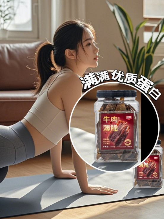 【臻邦·牛肉薄脆】 👑只选用草饲牛后腿肉的10%黄金米龙部位 💯这个部位的牛肉肌肉紧实,筋膜少,低脂多汁有弹性 吃起来口感柔韧弹牙,肉味香浓回味甘美👍 😄想减肥又管不住嘴的宝子们有口福啦~ 酥脆美味的牛肉薄脆, ✅脂肪含量低 ✅蛋白质含量高 ✅碳水含量低 😋满足口腹之欲的同时丝毫不用有身材焦虑!