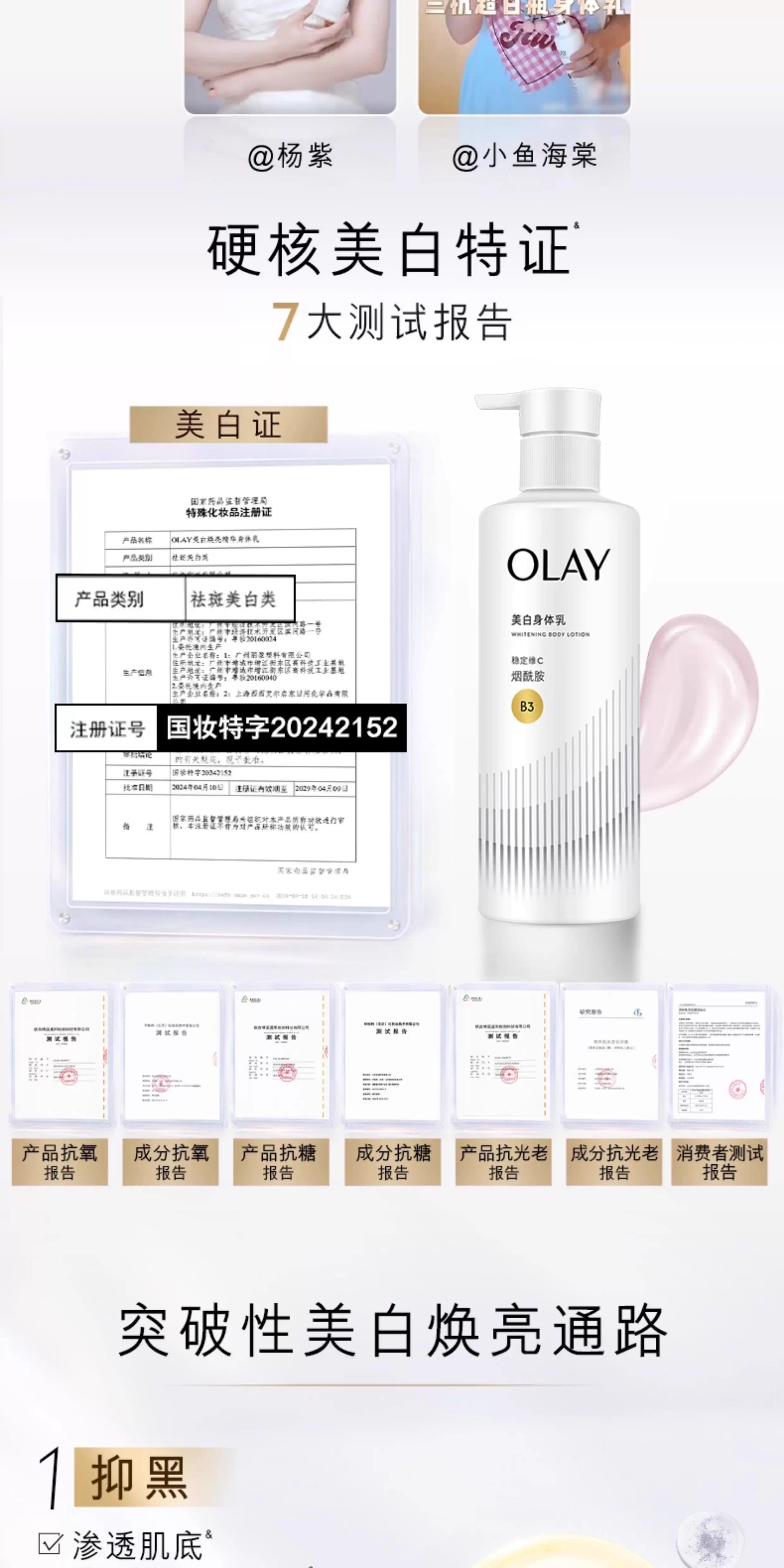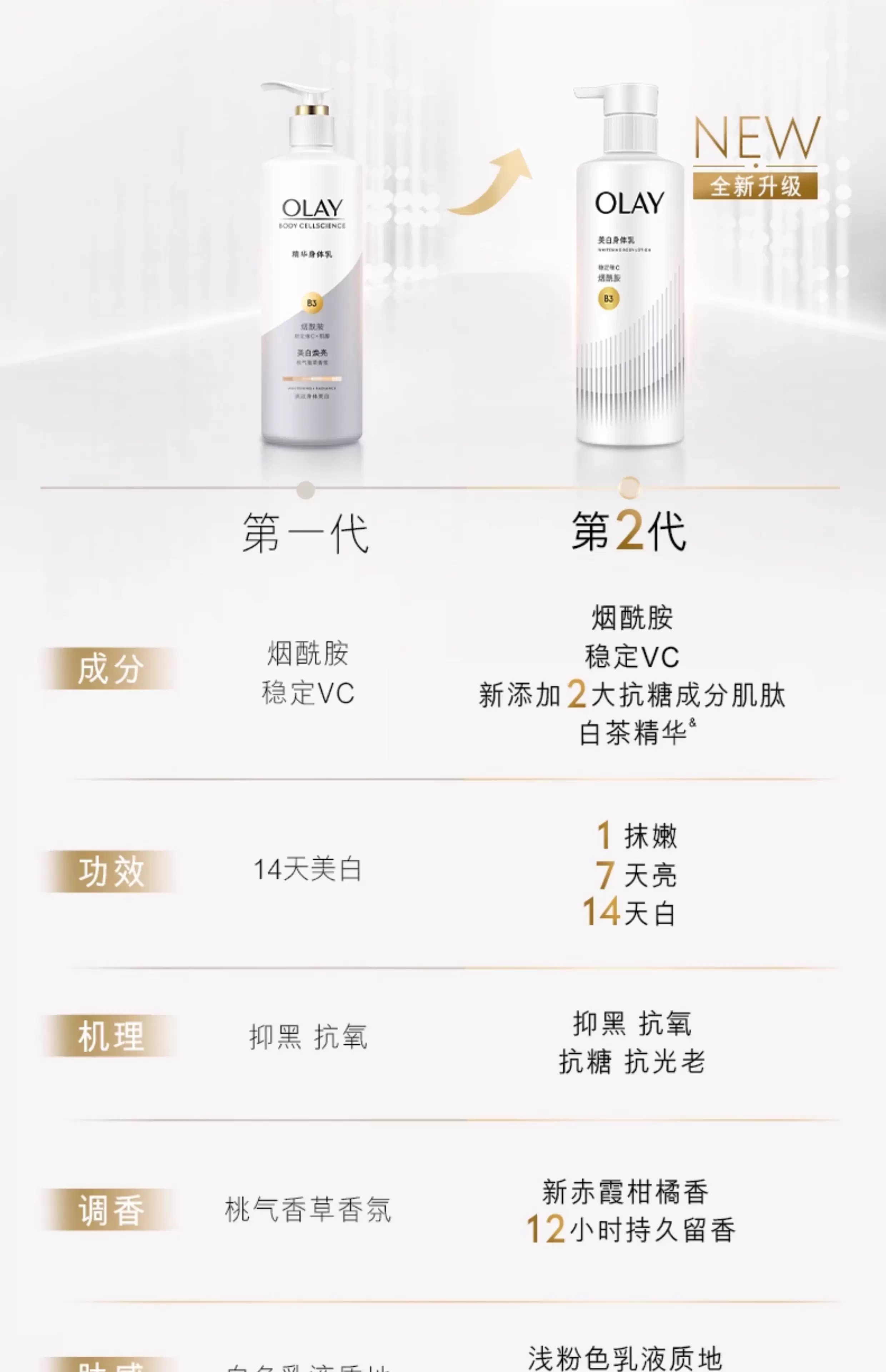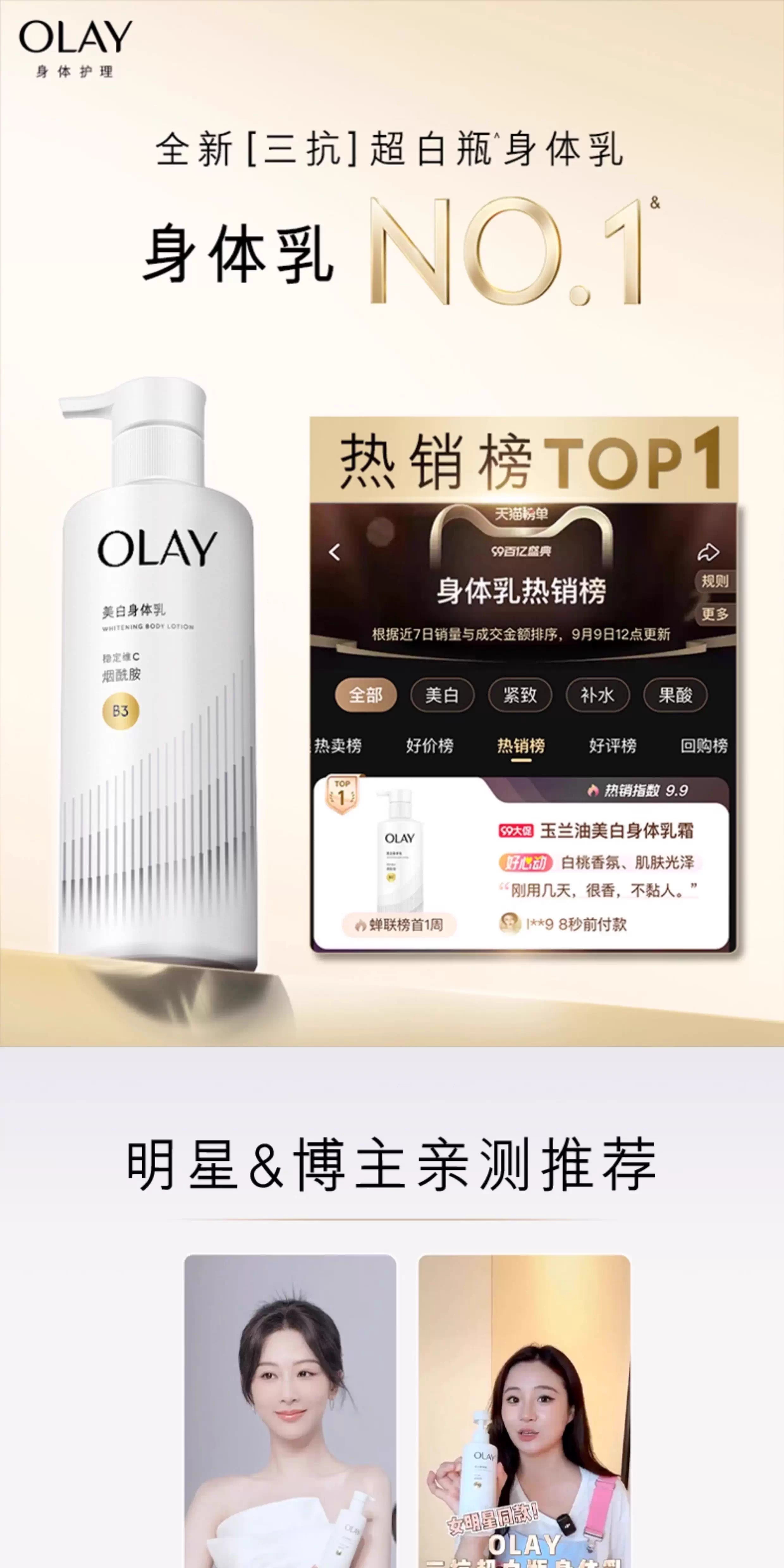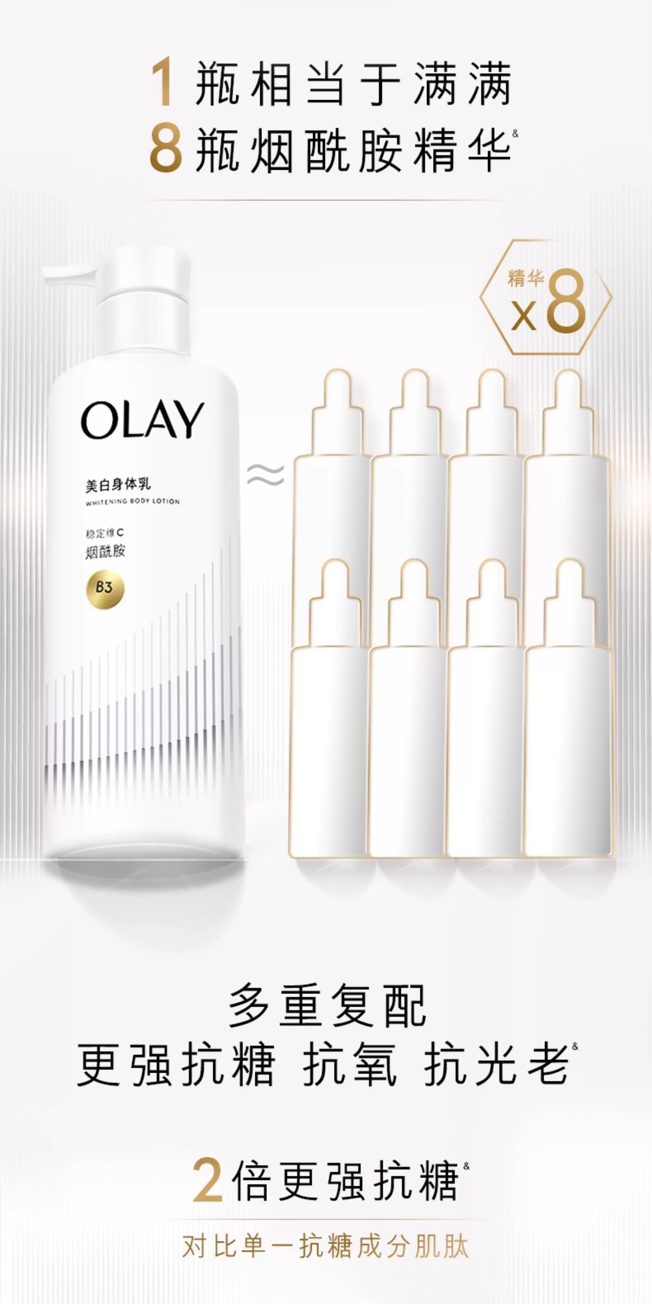 超润瓶olay玉兰油超白滋养弹润精华身体乳260g 中样30g烟酰胺滋养保湿留香