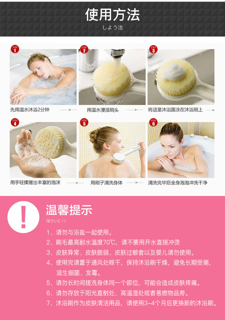 【洗澡不伤肤 全身无死角】日系长柄软毛沐浴刷 深度清洁毛孔污垢 柔软更舒适 去角质 打造光滑美背