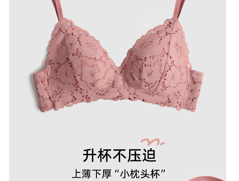 好奇蜜斯蕾丝内衣女夏小胸聚拢无钢圈性感文胸套装调整型薄款胸罩新版莱西