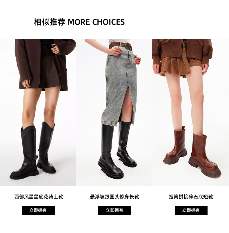 马君妍同款lost in echo显瘦巴恩风真皮厚底宽筒靴子长筒骑士靴