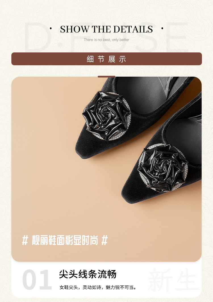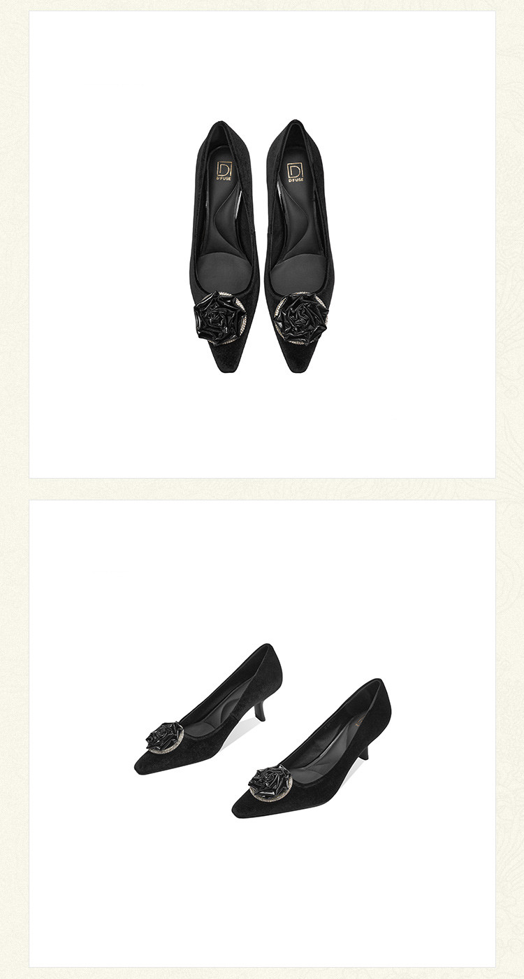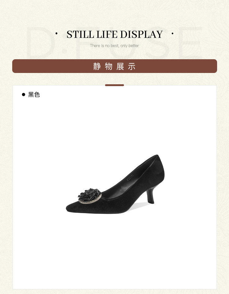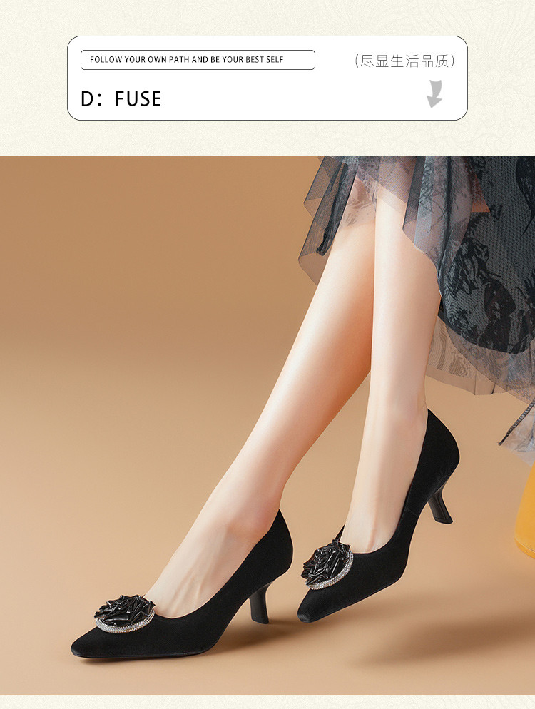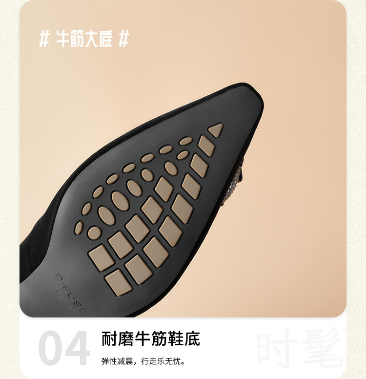 DFuse迪芙斯尖头高跟单鞋女2024新款时尚水钻花朵一脚蹬时装鞋女DF431114AE