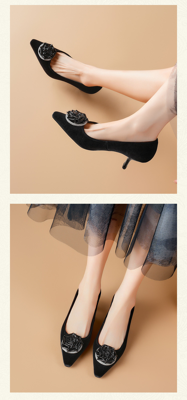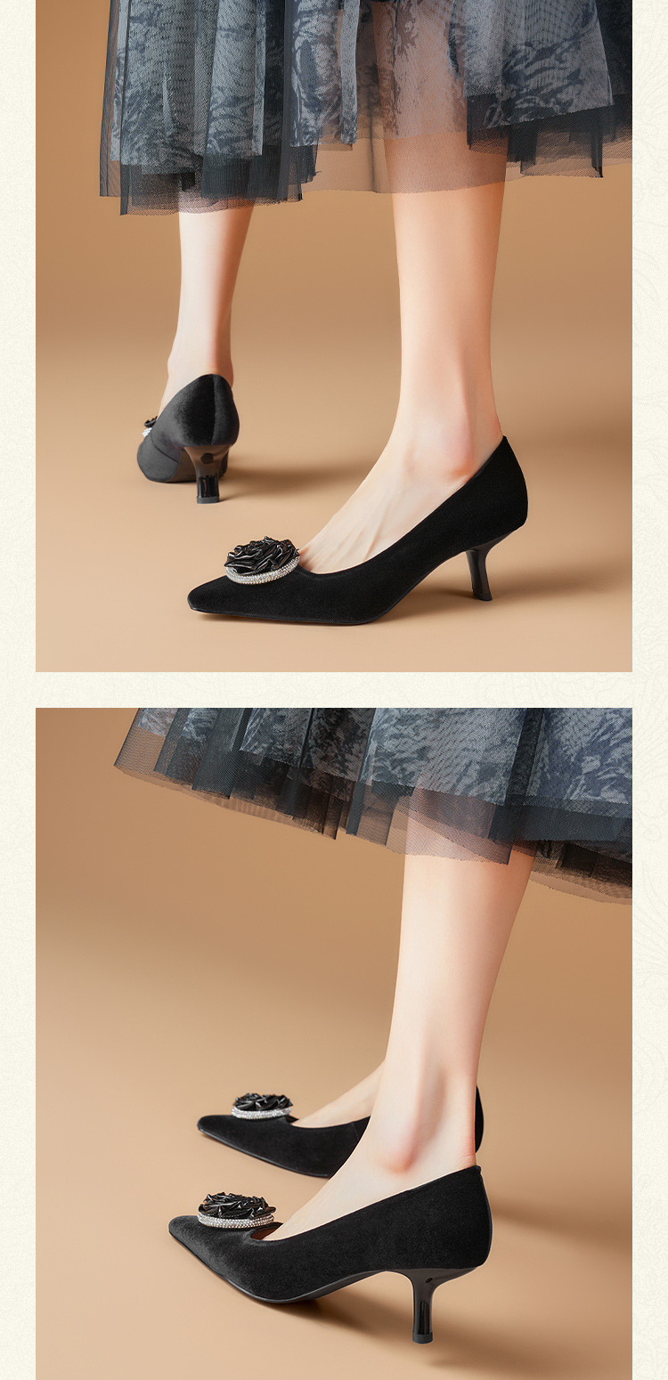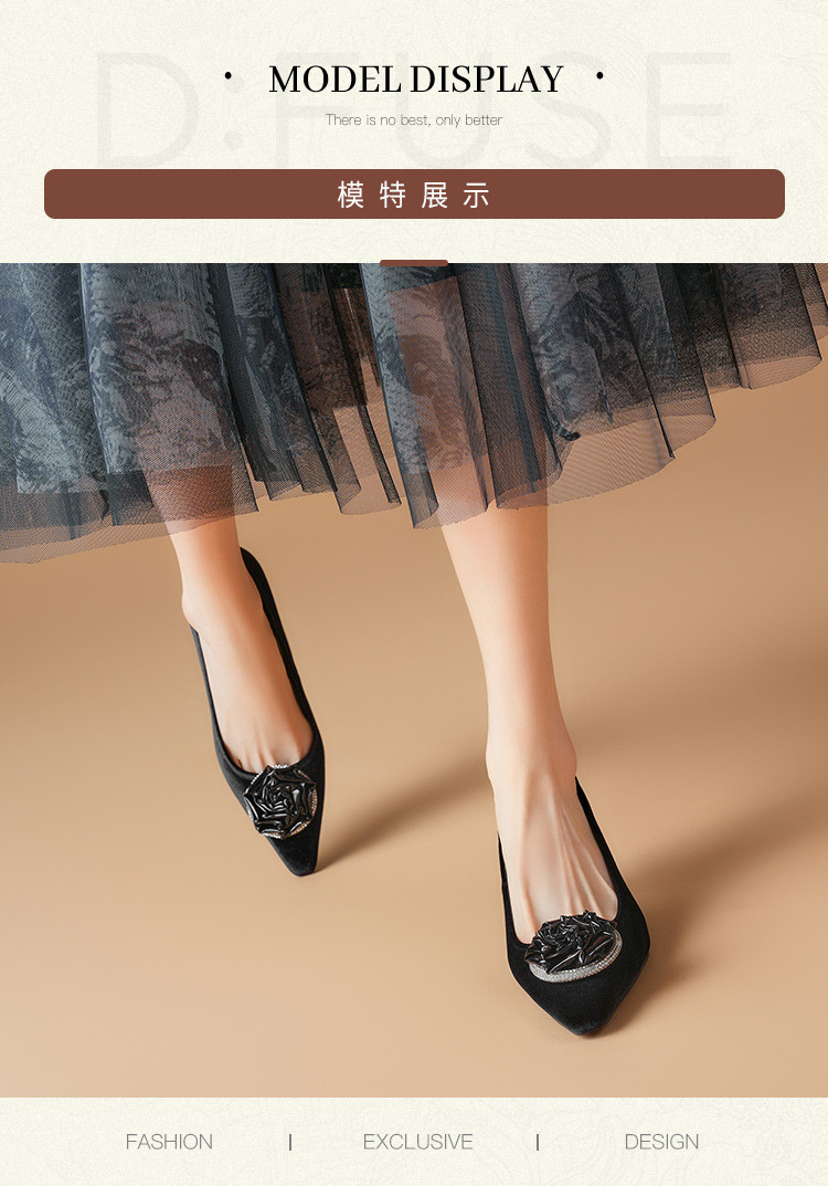DFuse迪芙斯尖头高跟单鞋女2024新款时尚水钻花朵一脚蹬时装鞋女DF431114AE