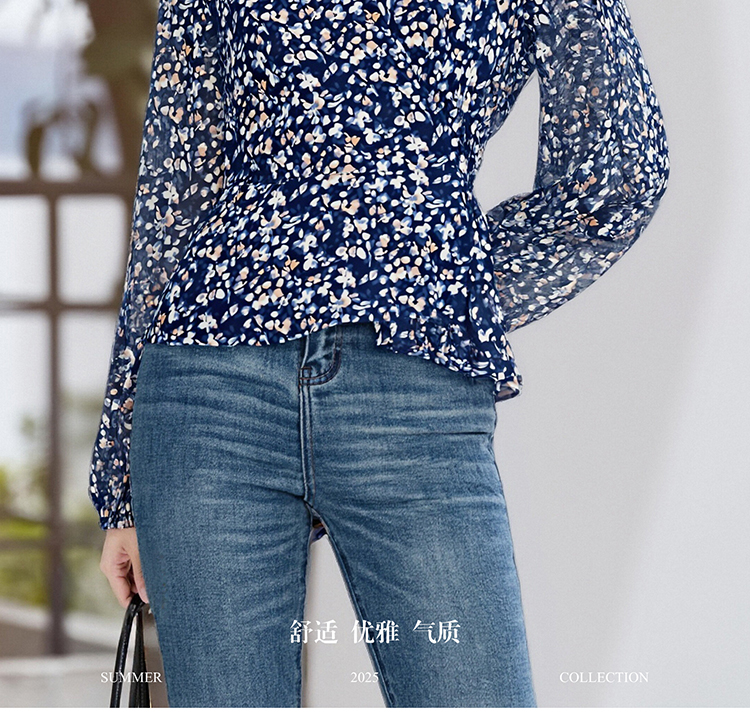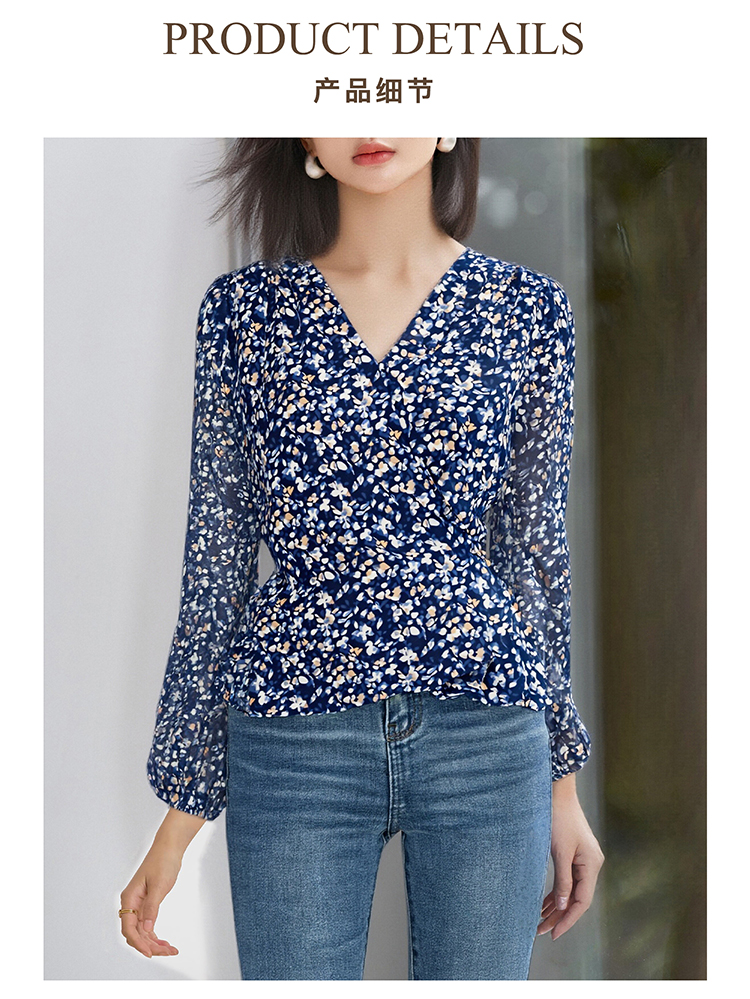 剩S/M/L 米思阳2026春季新款优雅减龄碎花衬衫收腰显瘦V领上衣女4291