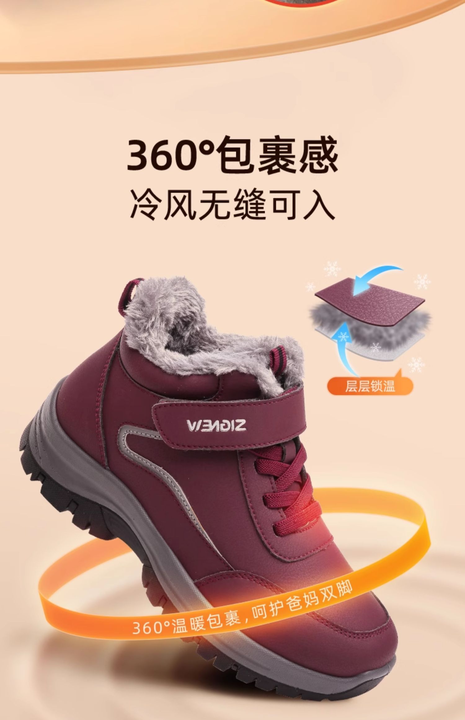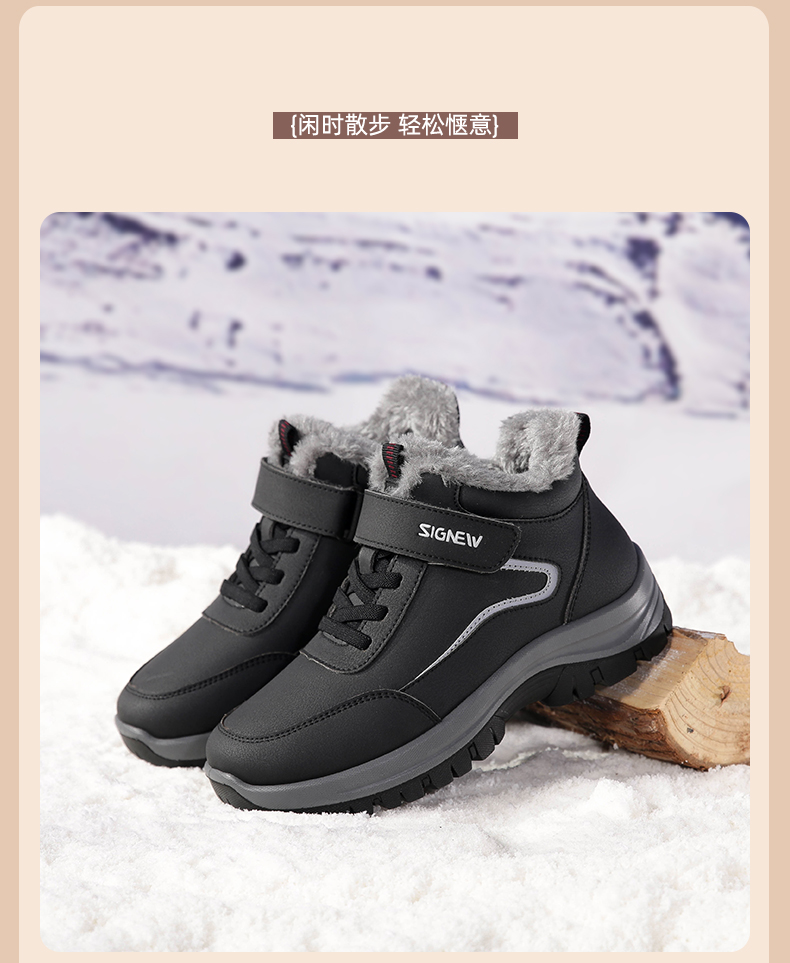 加绒保暖老人鞋男2024冬季新款雪地靴中老年健步鞋软底爸爸鞋棉鞋A23M959-Y9H