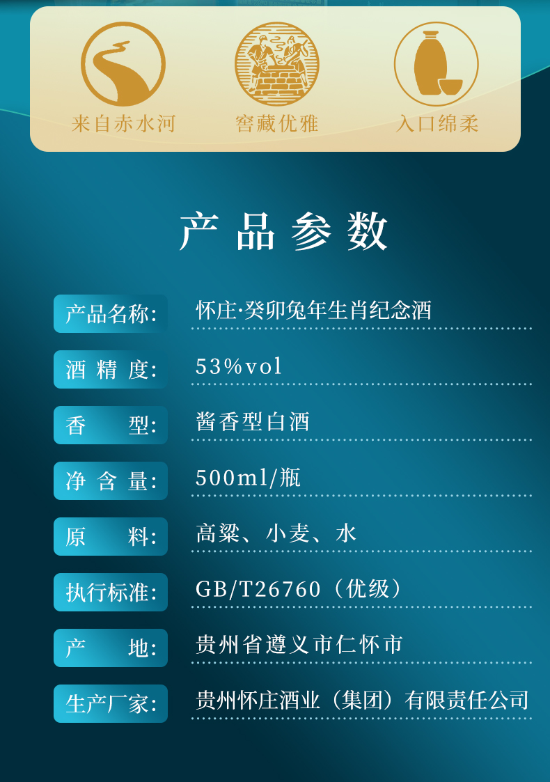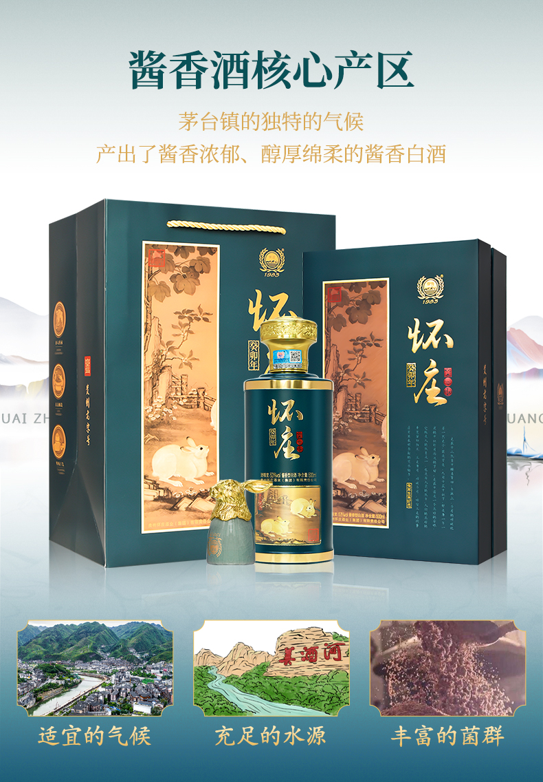 怀庄·癸卯兔年 酱香型白酒 53度 高度酒 送礼自饮 500mL*6瓶整箱装