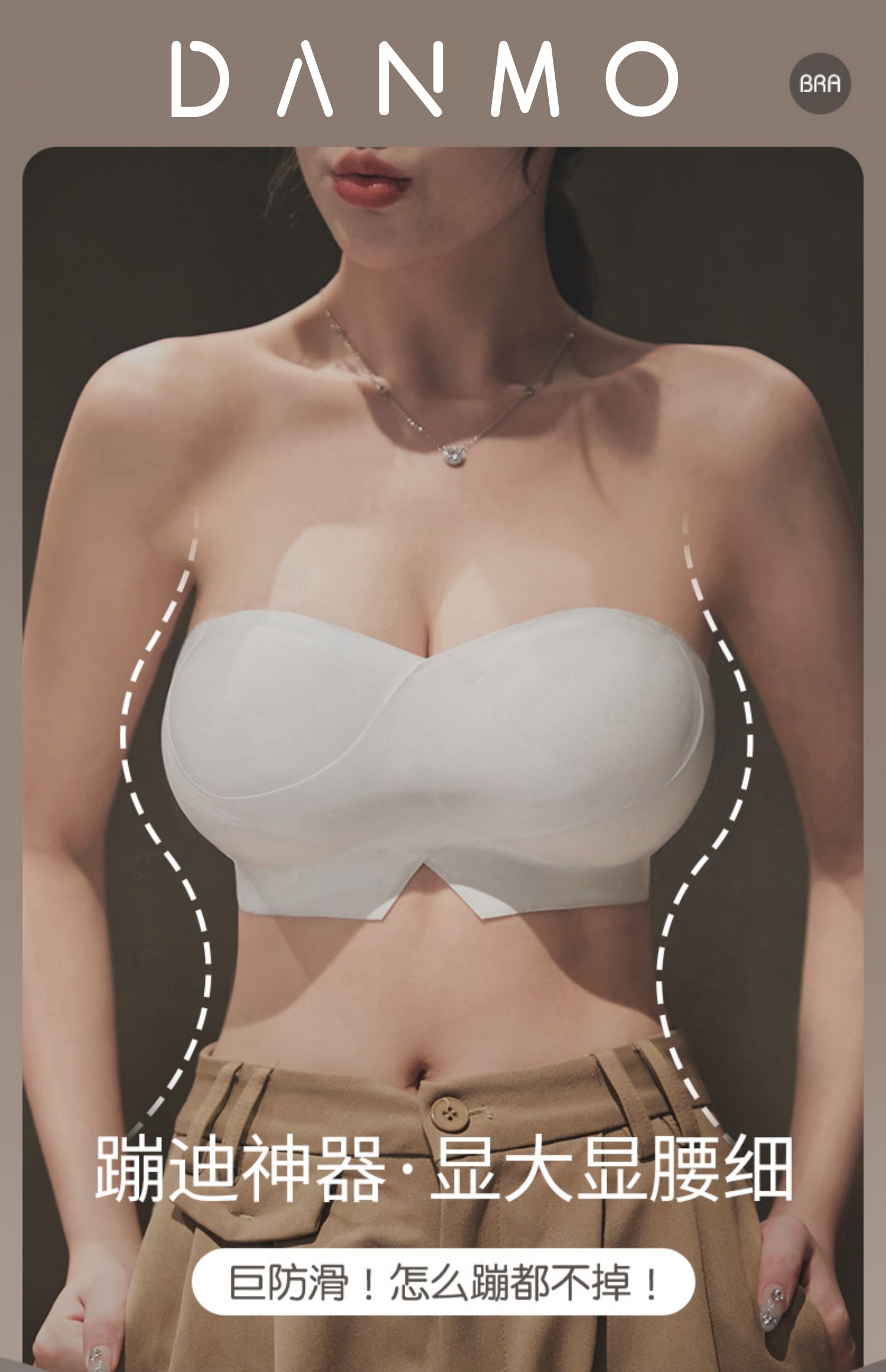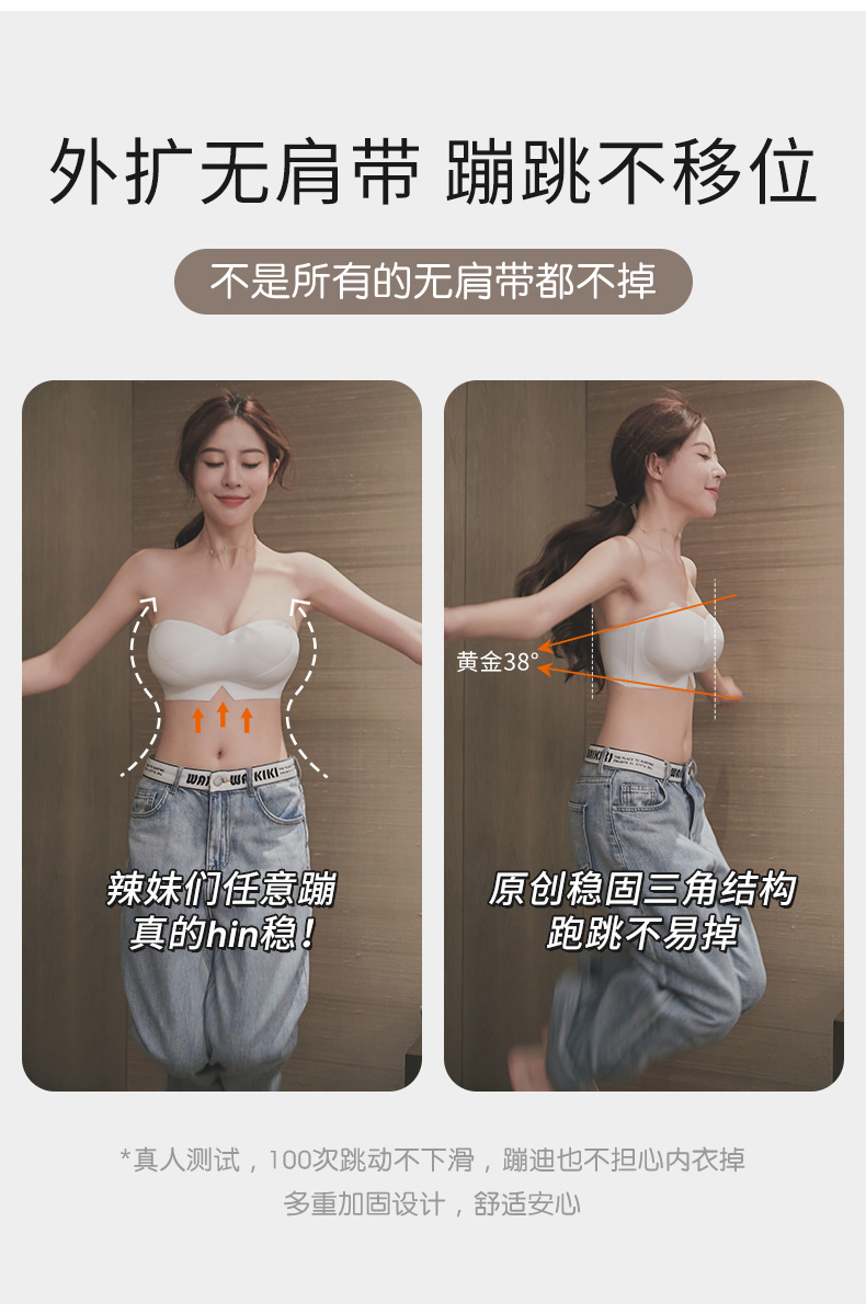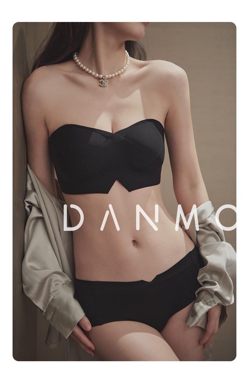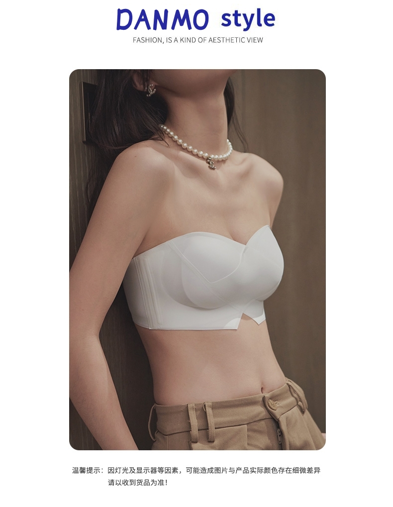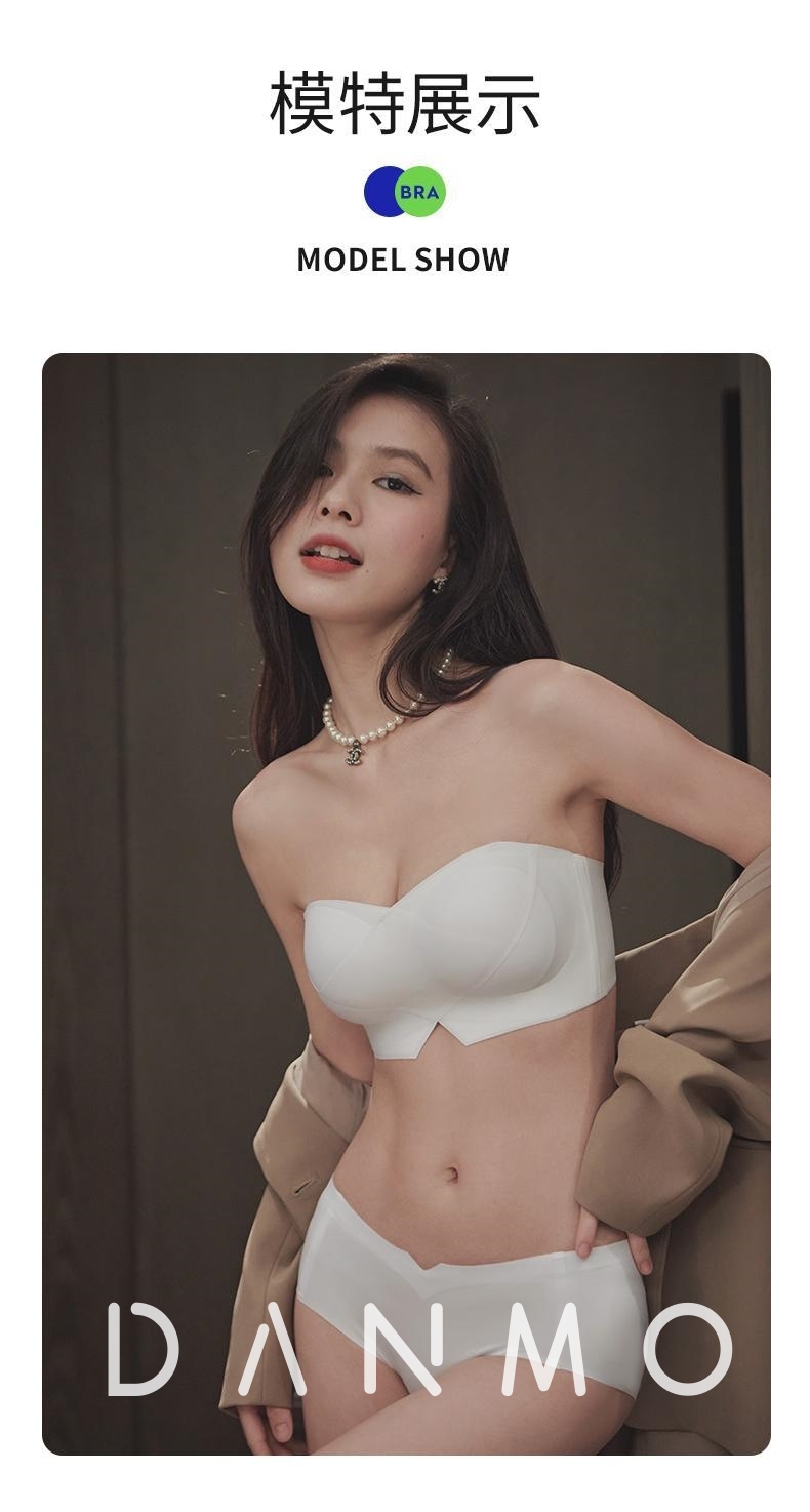 DANMO漫画无肩带性感文胸,无痕聚拢、 一体式防滑