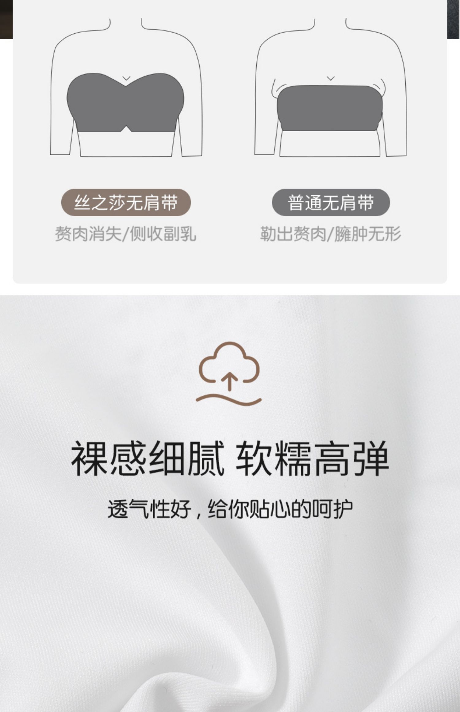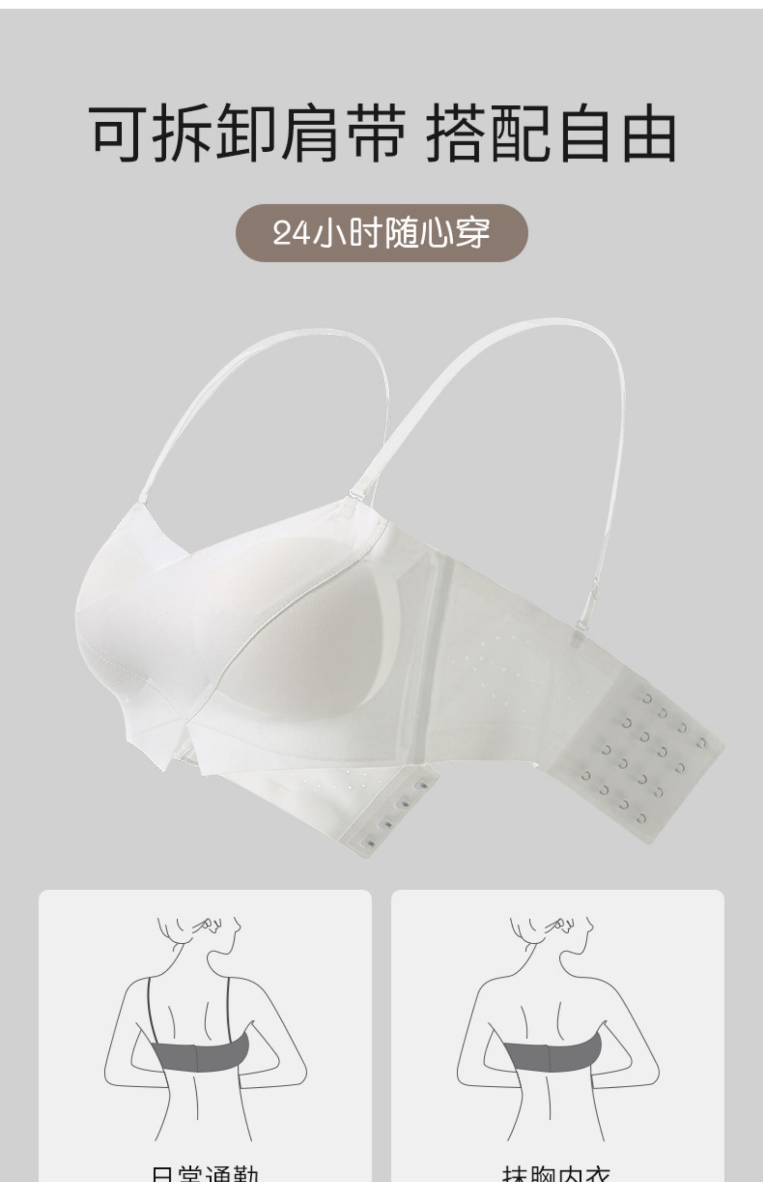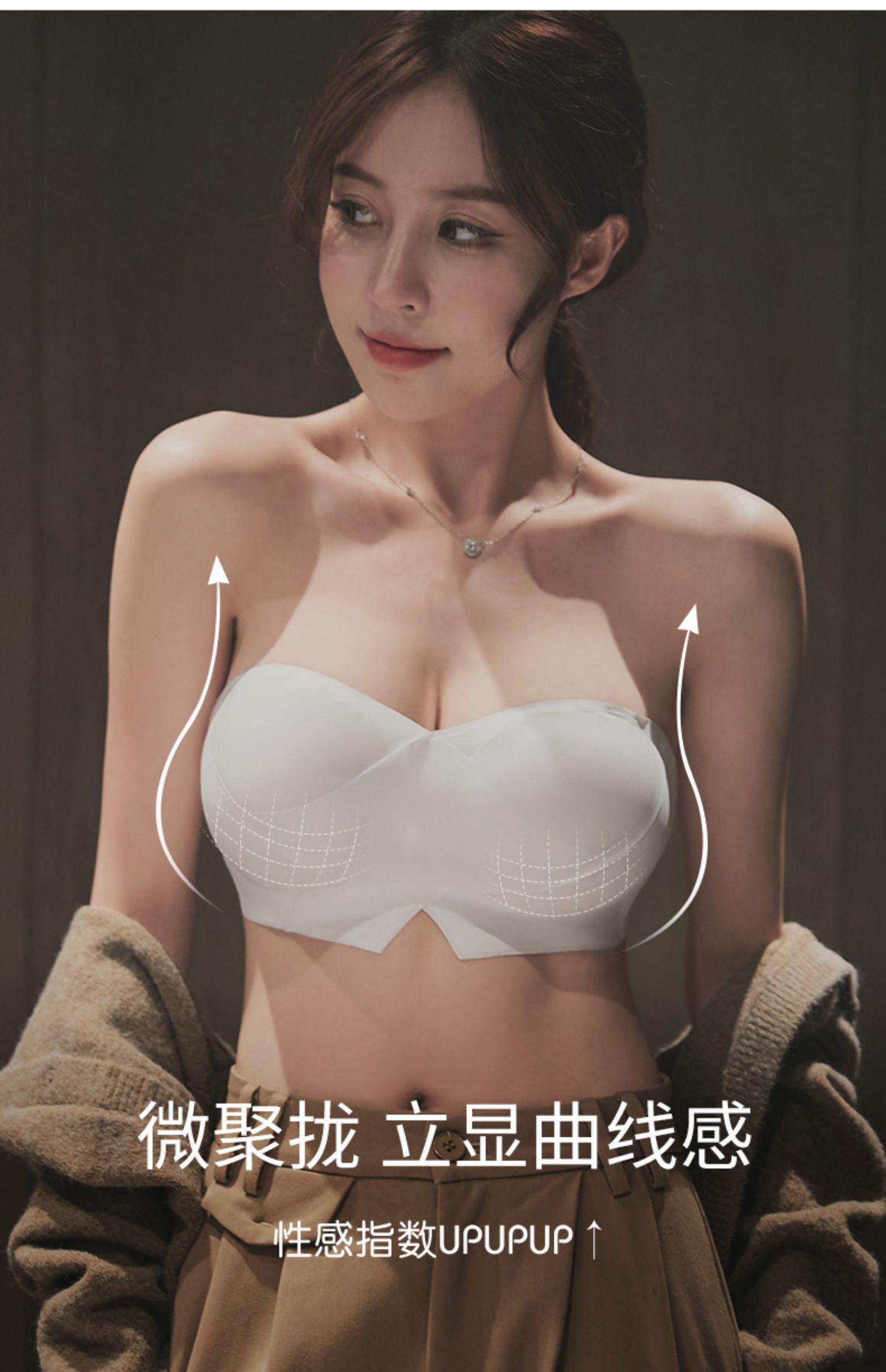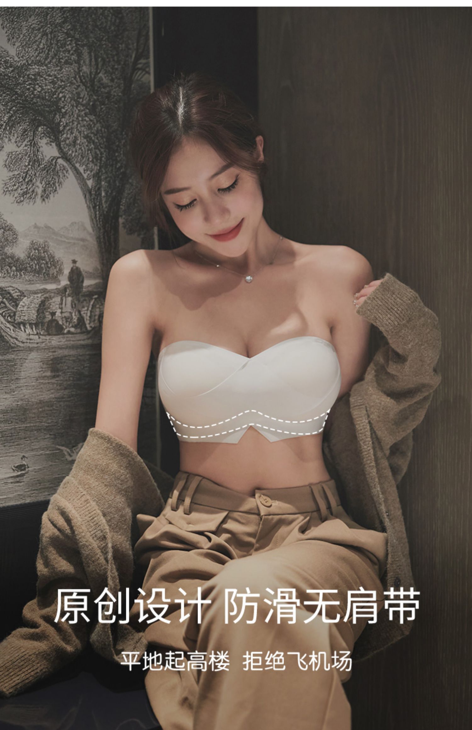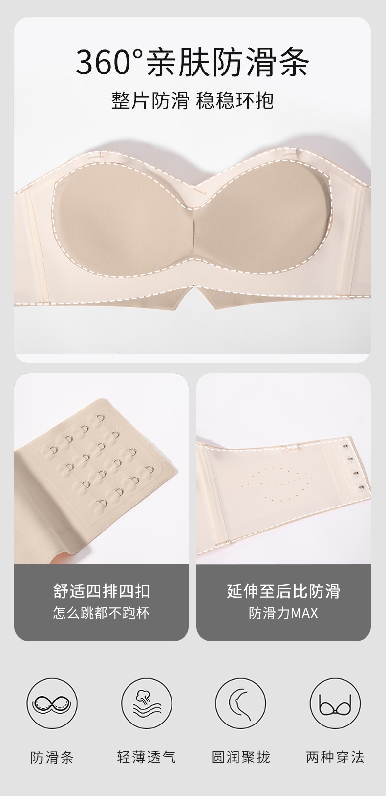 DANMO漫画无肩带性感文胸,无痕聚拢、 一体式防滑