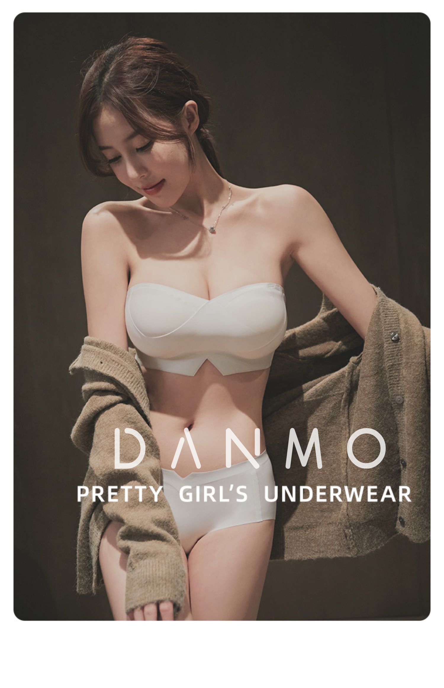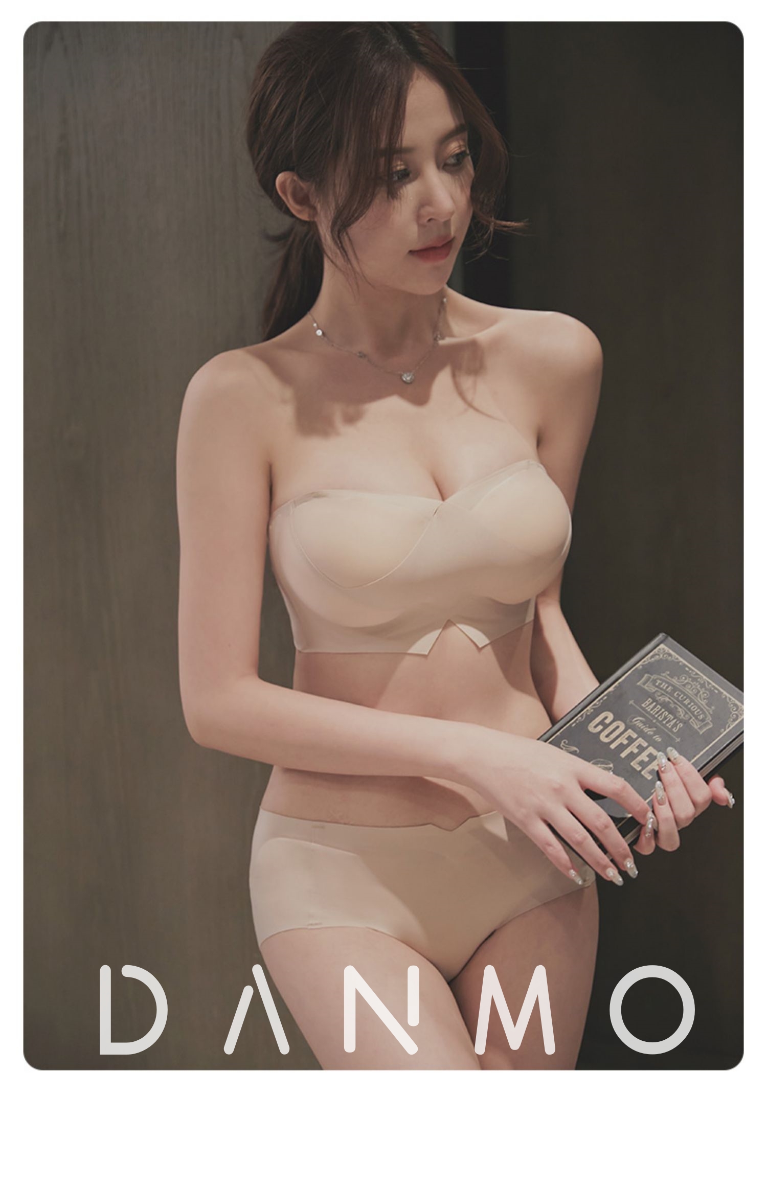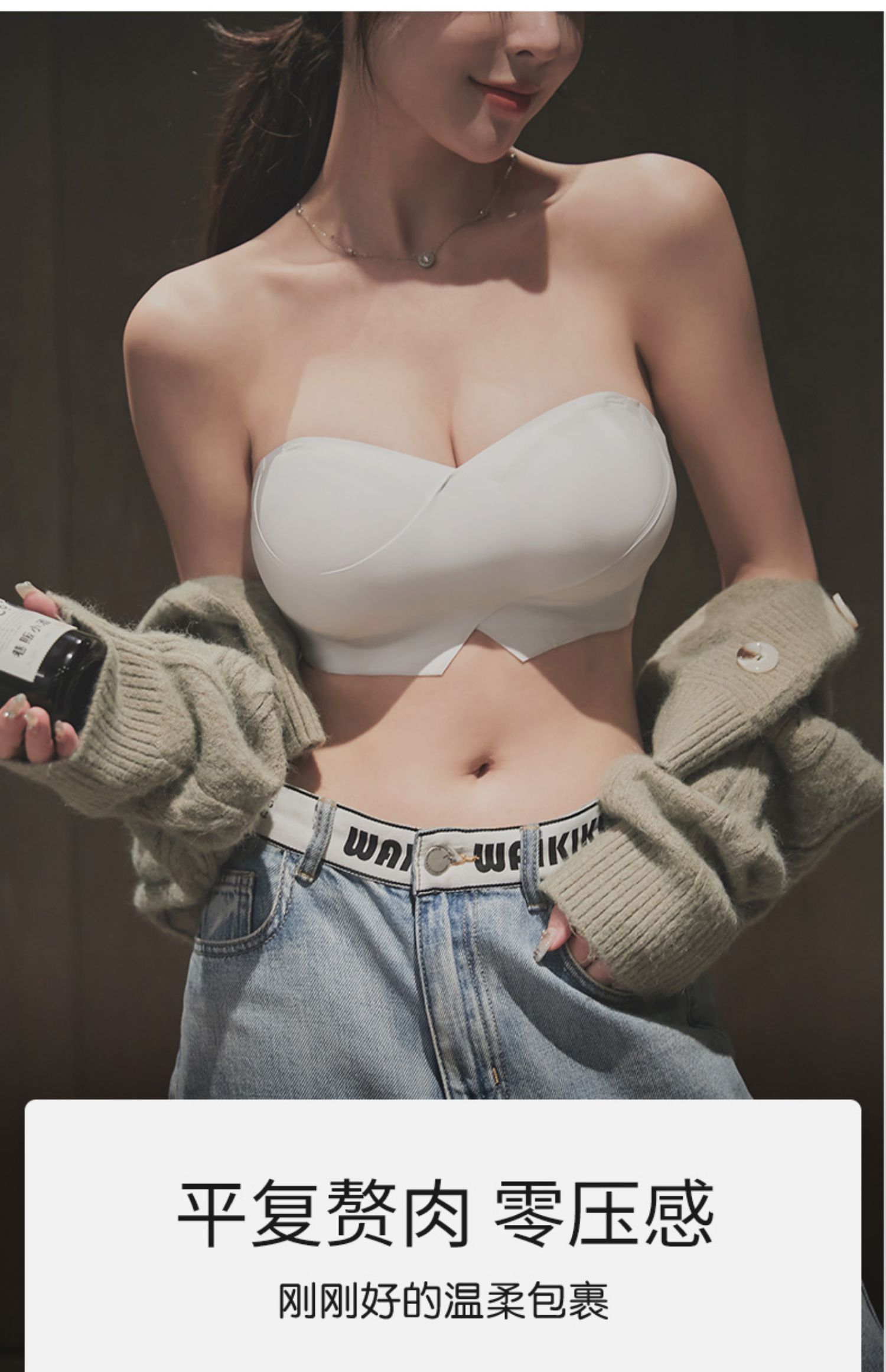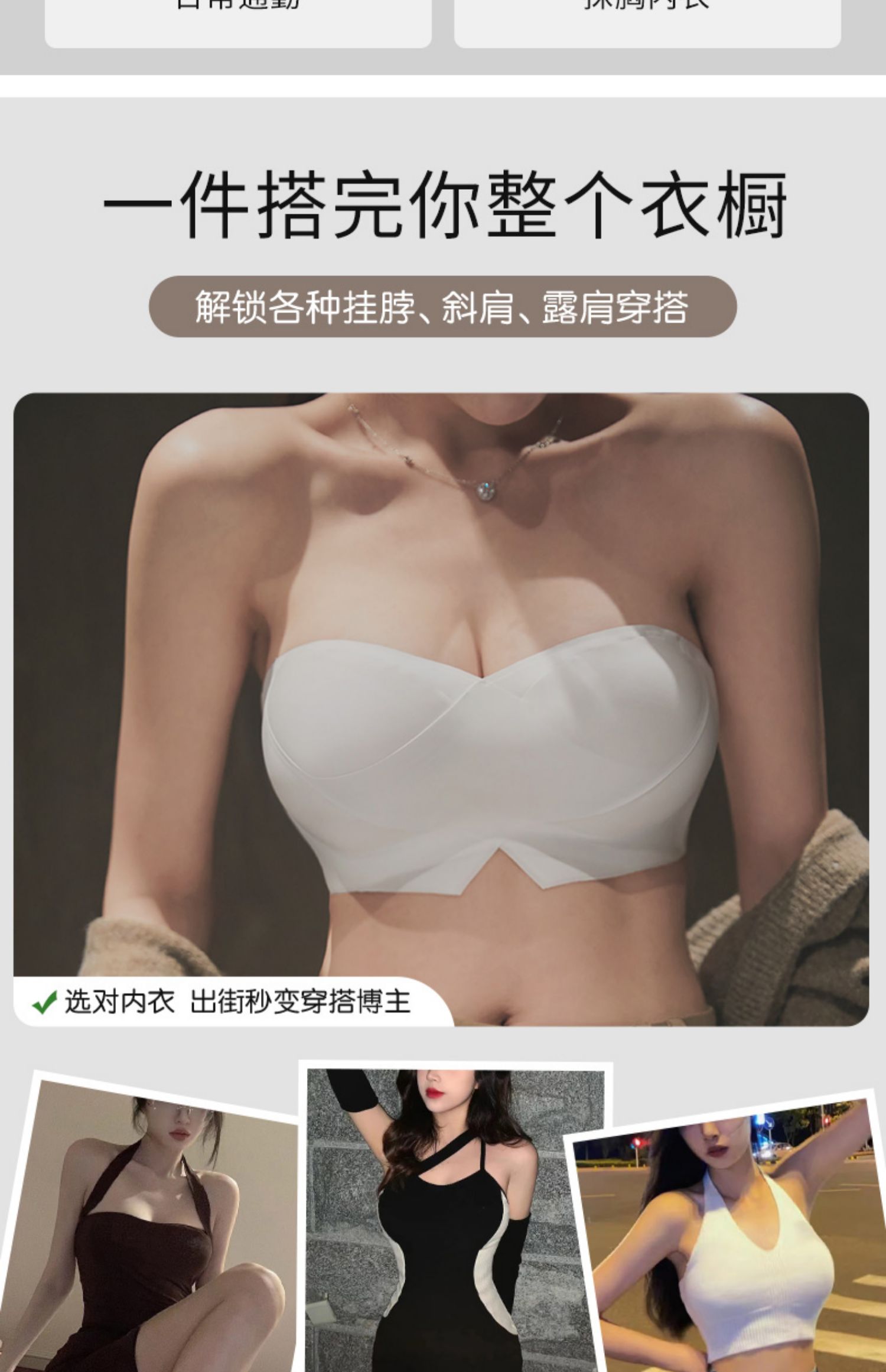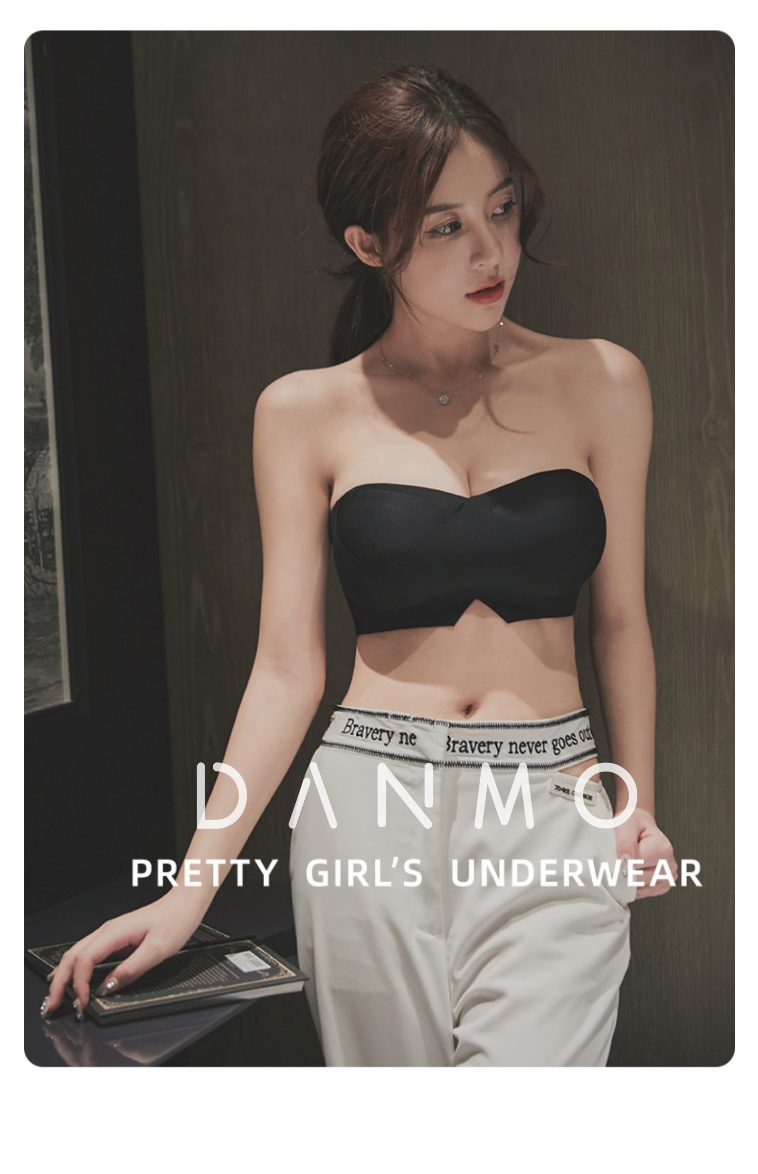 DANMO漫画无肩带性感文胸,无痕聚拢、 一体式防滑