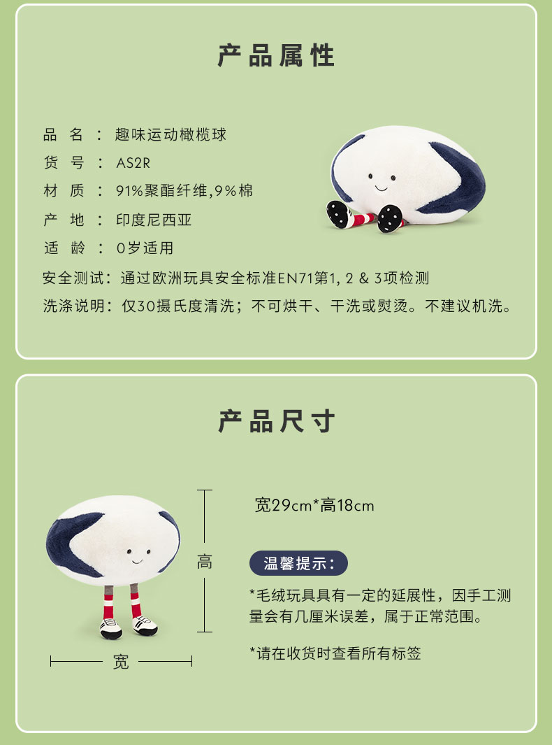 Jellycat 趣味运动橄榄球 18cm