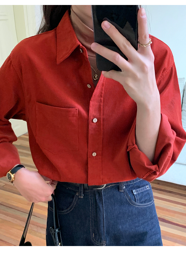 Avann灯芯绒宽松净版叠穿上衣5153