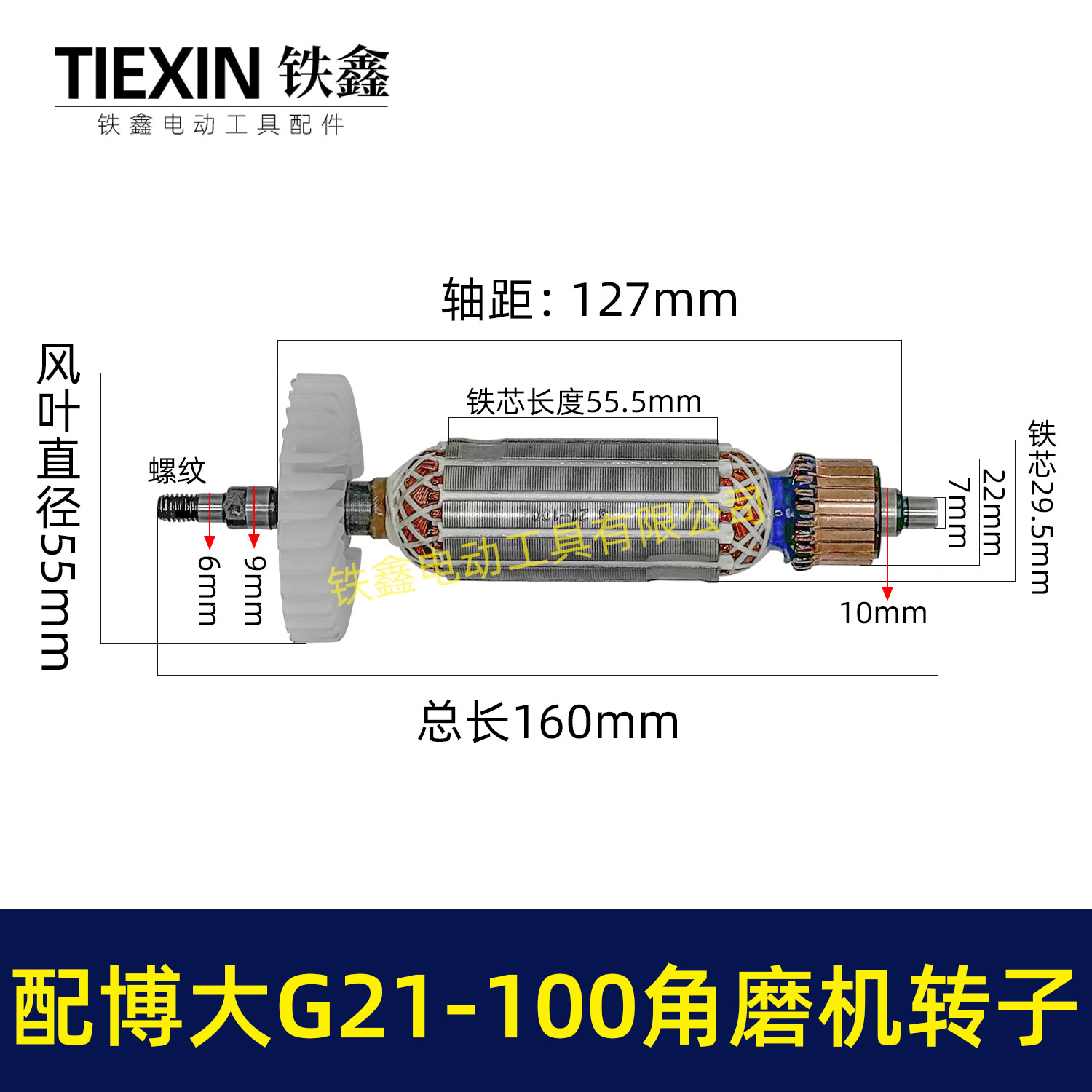 【货号07092】配博大G21-100角磨机转子银箭4390角磨机转子GM7-100磨光机