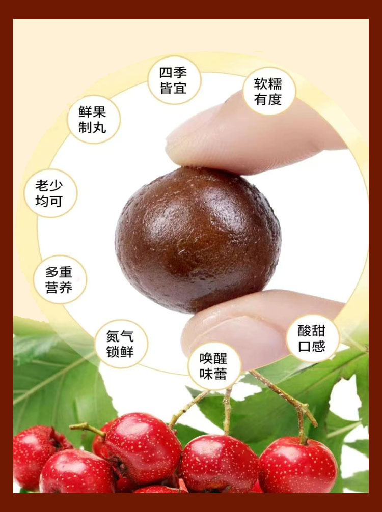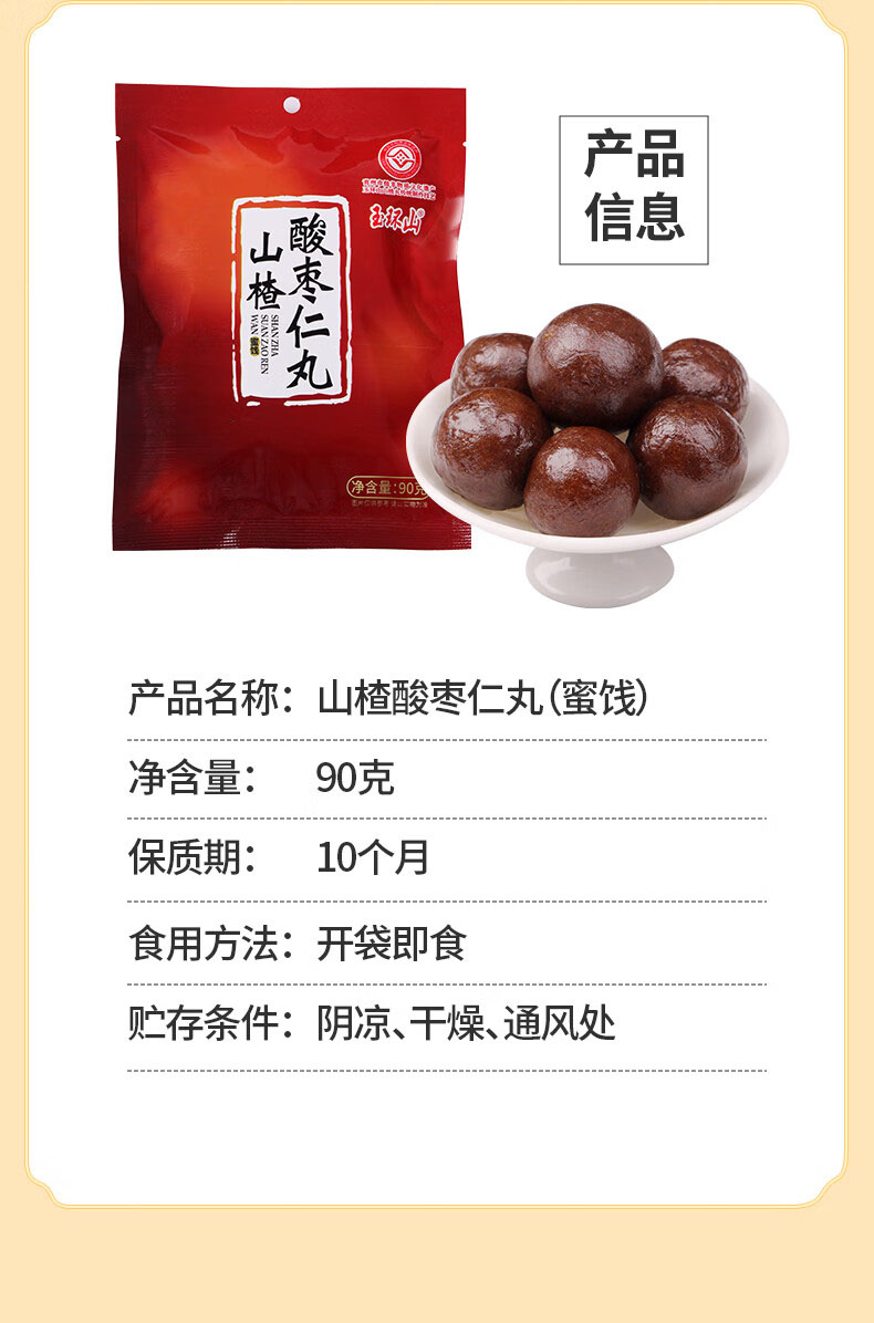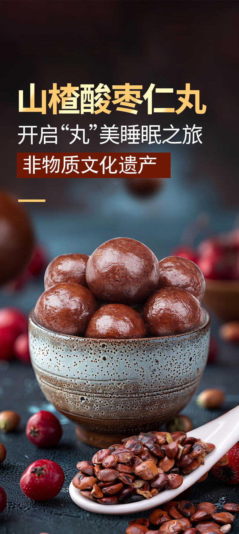 山楂酸枣仁丸,18袋组合,非遗技艺,选用优质野生酸枣仁,优质大个山楂,佐以桂圆、莲子等多种本草,古法配方,酸甜适中,酸而不涩,甜而不腻,老少皆宜,是家庭常备休闲食品M